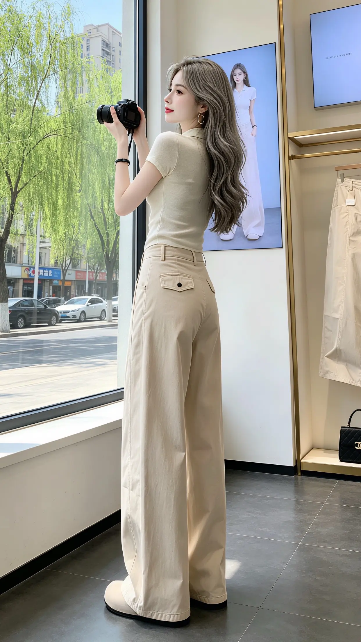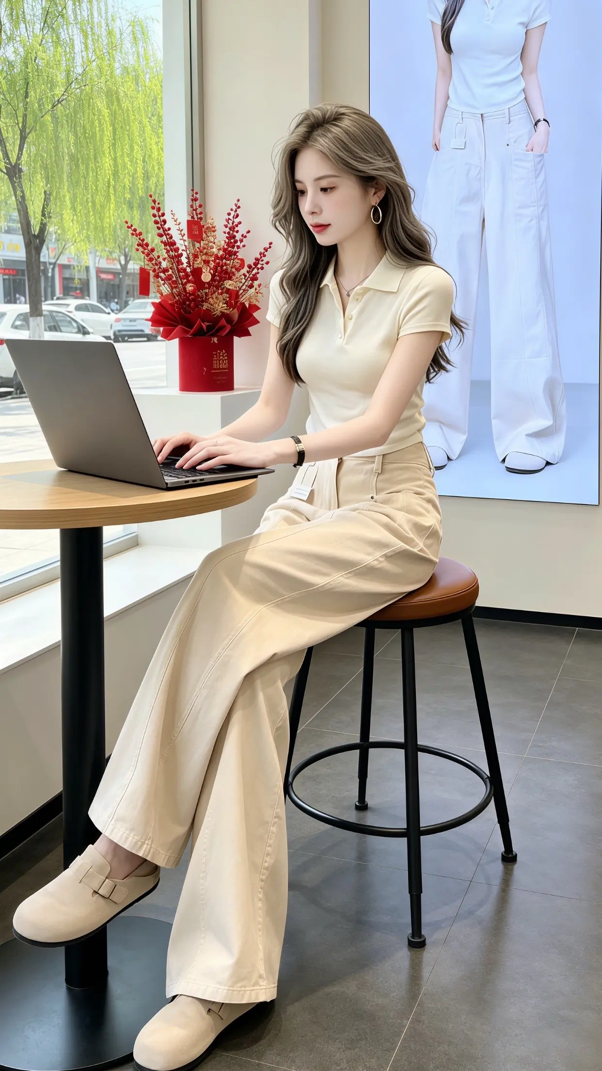 回头率超高的时髦老钱风!这组大地色系穿搭太绝了,浅咖针织Polo衫搭配藏青阔腿