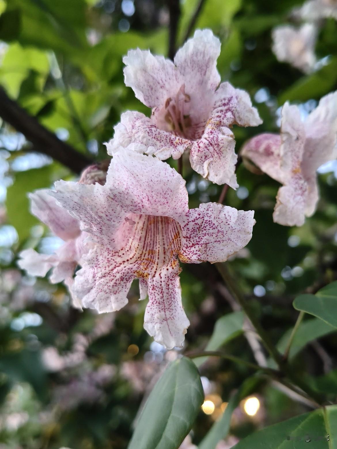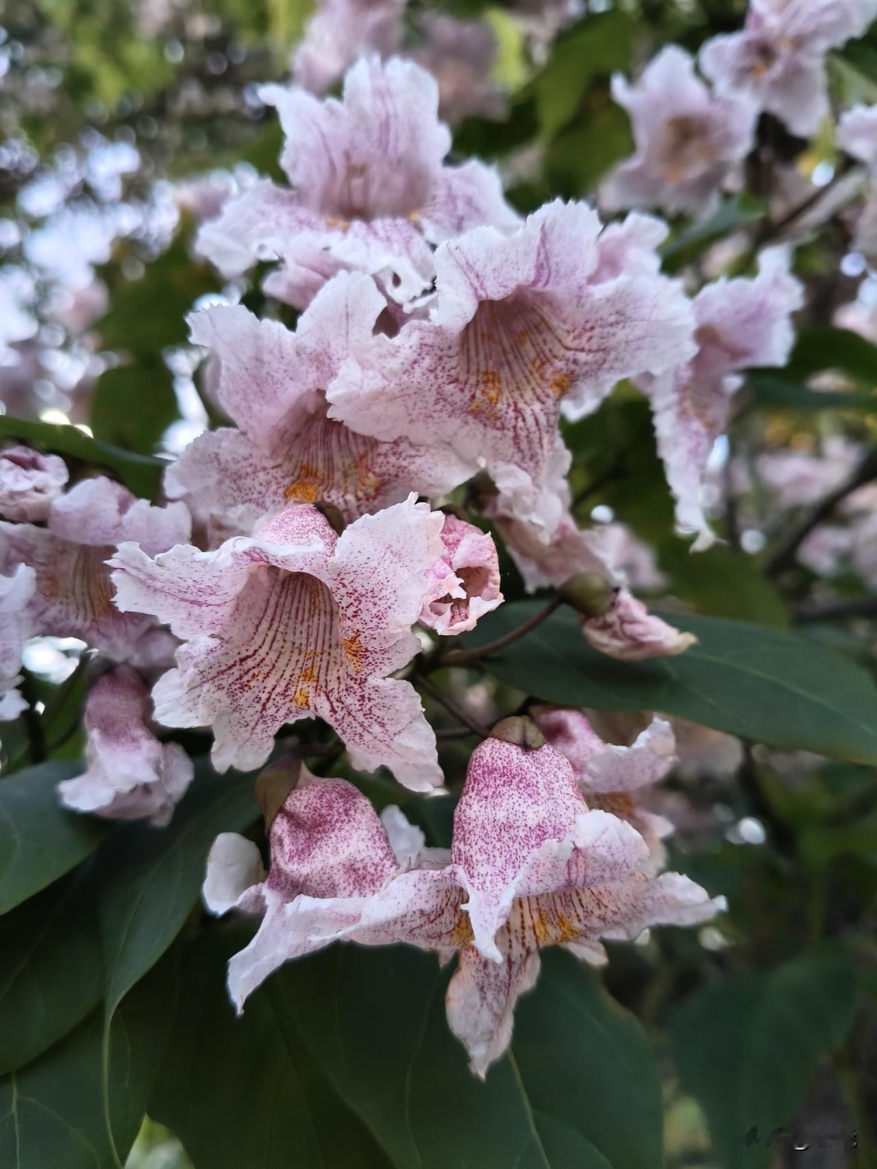 楸树花呈淡粉色,就像一个个小喇叭挂在枝头,微风一吹,轻轻摇曳,仿佛在演奏春天的乐章。