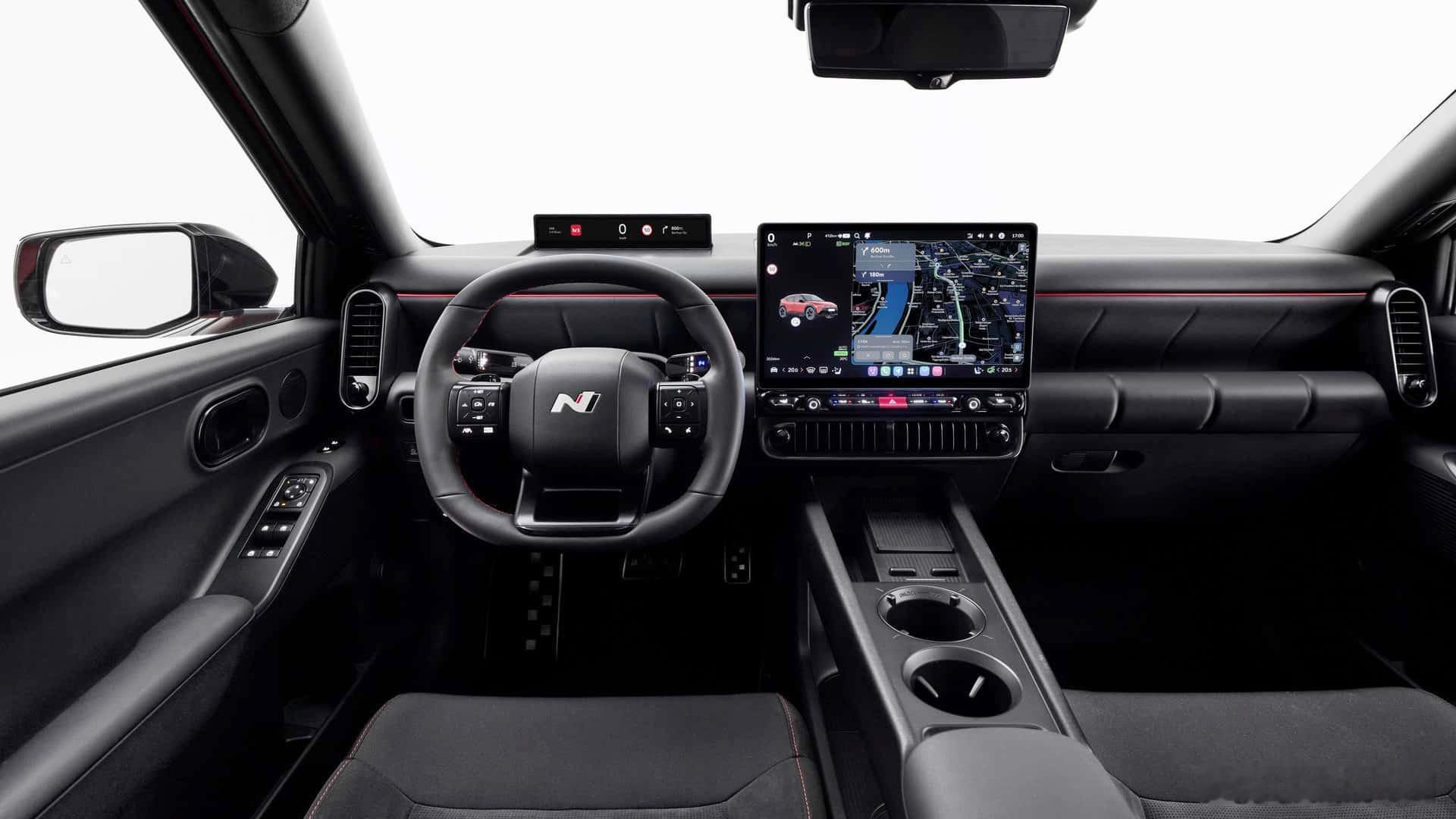 线条有Gensis GV60和初代Ioniq/普锐斯的影子,新的设计语言让这个尺寸介于飞度和ID.3之间的小家伙激进且健壮。因为轴距较长且车型较高,现代表示它的车内空间好于对手,而下面挖了深储物格的行李箱容积比高尔夫还大。