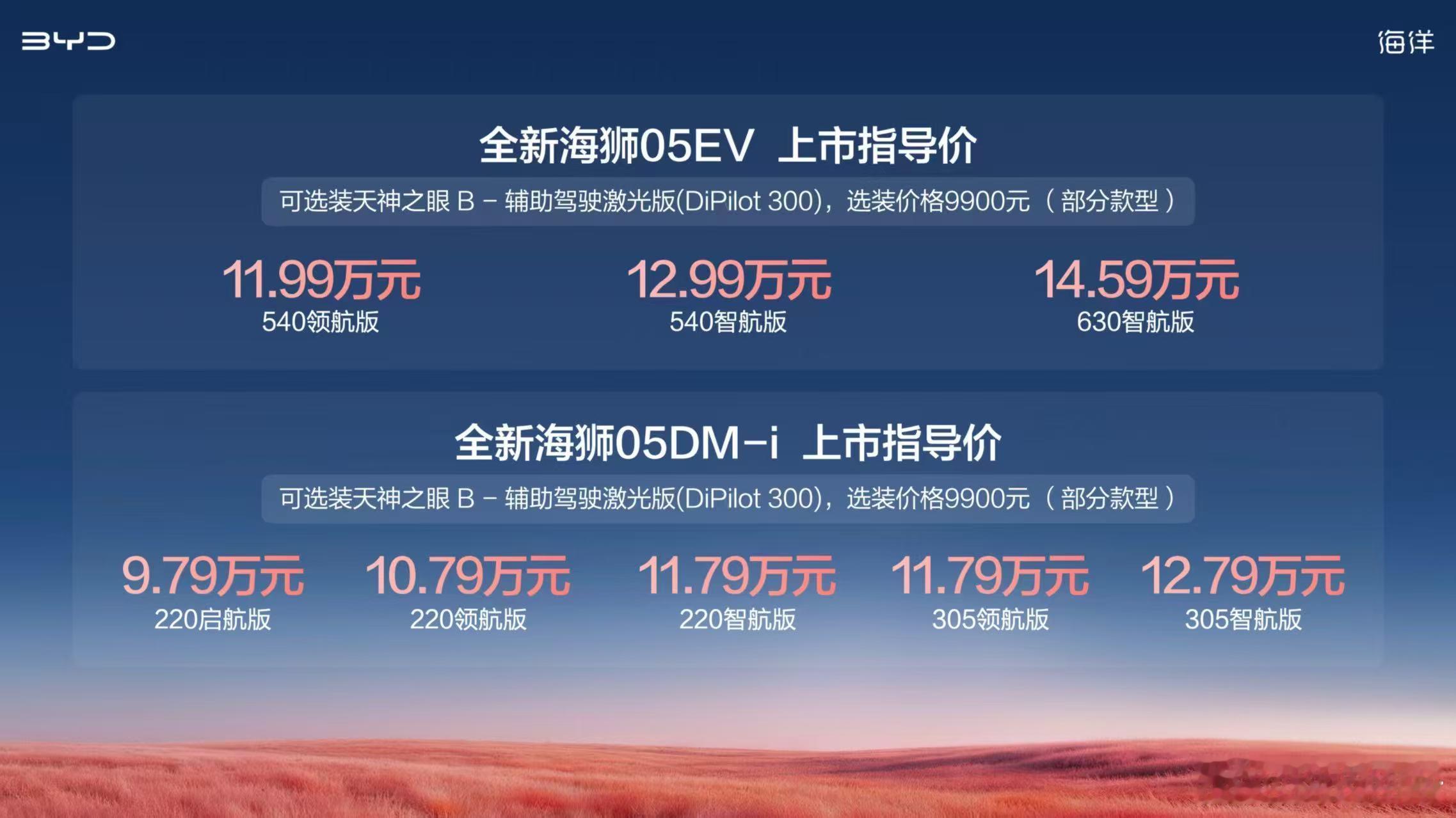 昨晚上市的全新海狮05,真的让我看到了什么叫“价格屠夫级诚意”DM-i插混版9.79万起、EV版11.99万起,这个价位,却把家用用户在意的所有点都拉满了。