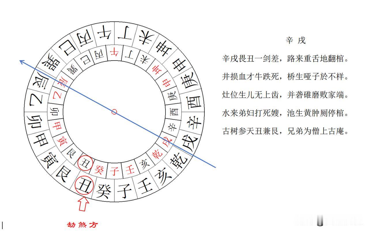 口诀的意思是坐山为辛山或戌山时,核心禁忌在丑方(传统说法中的“劫煞位”),旧民谷认为在丑方出现不同事物,对应家族关系、身心健康等会有一些不良影响。