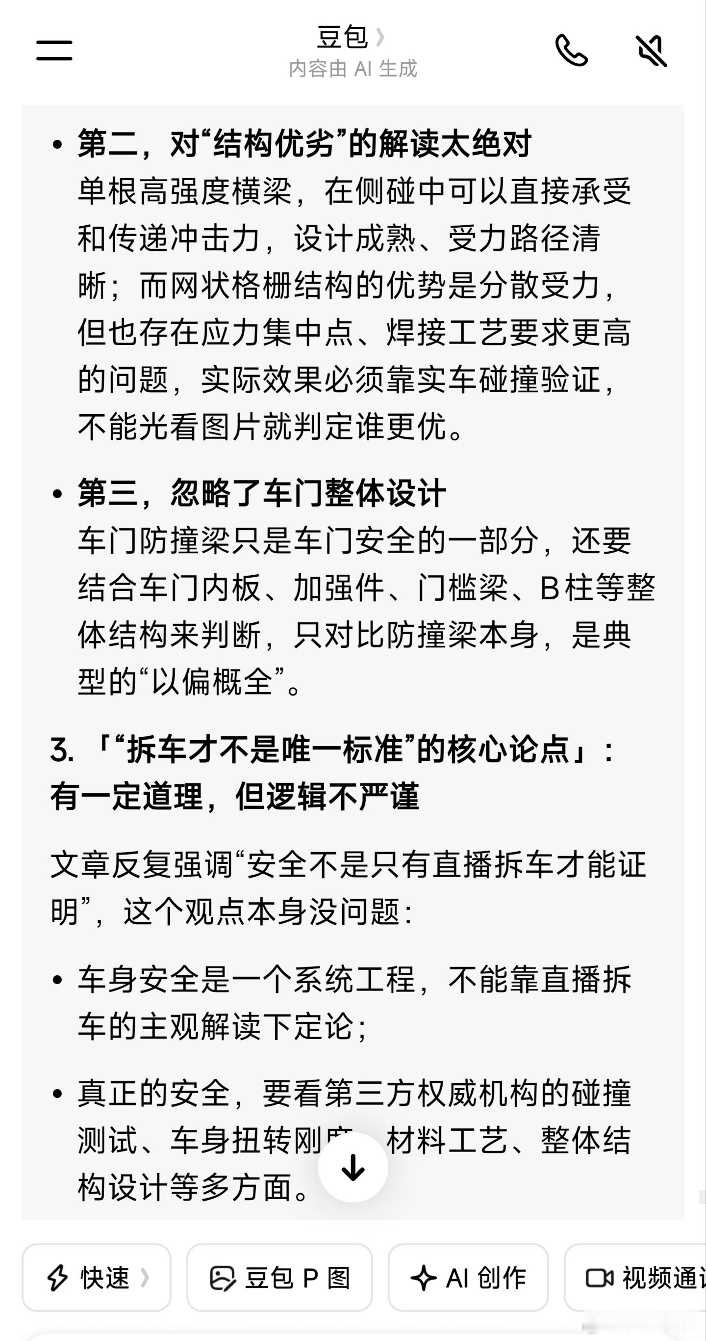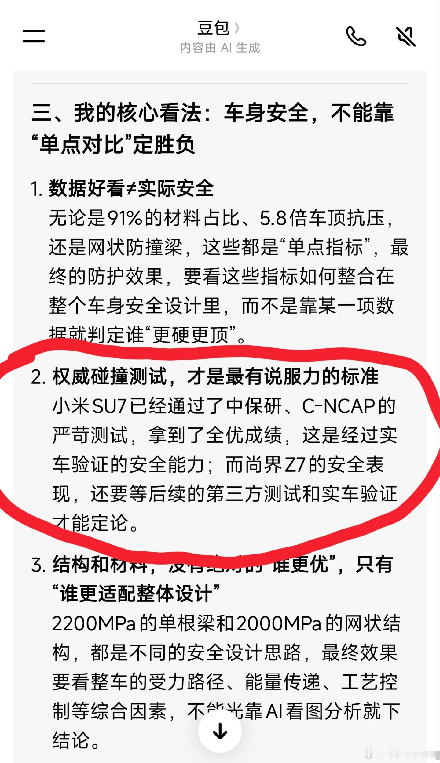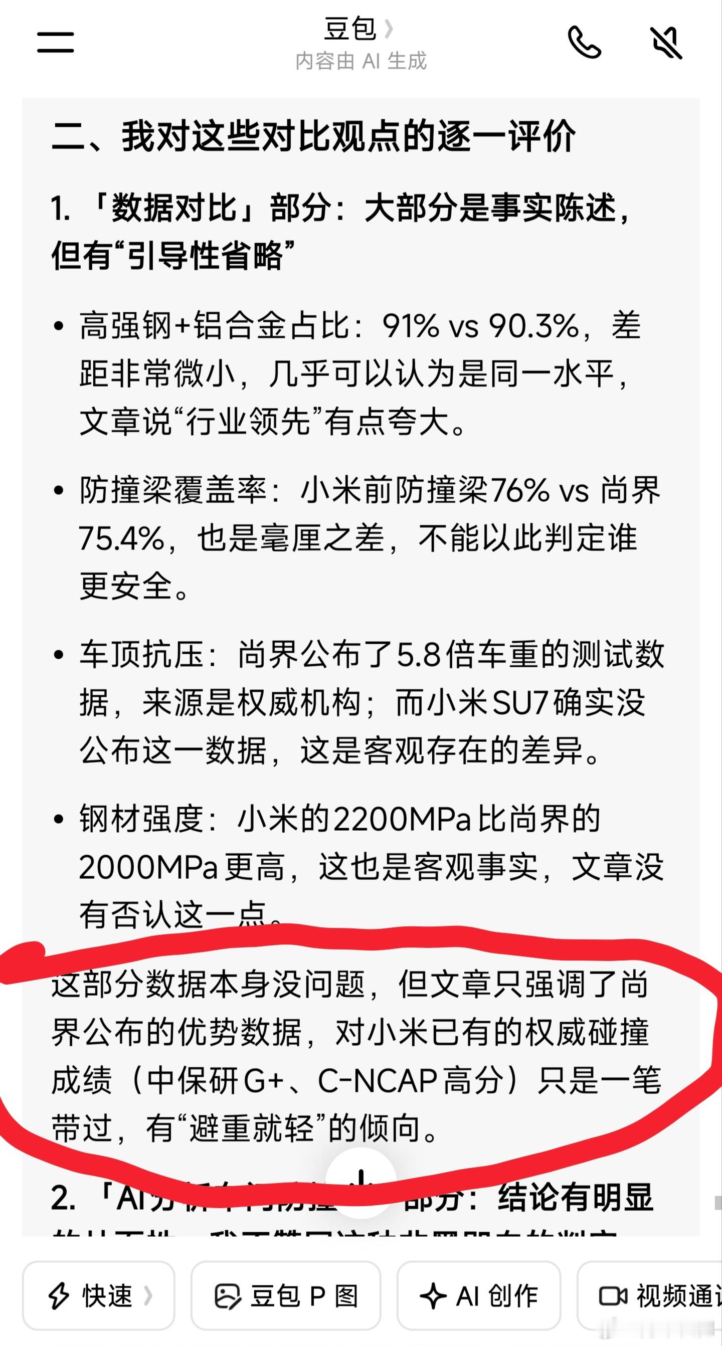 有人利用豆包AI评测,去证明尚界Z7比小米SU7强,那么把这篇文章再问豆包,豆包