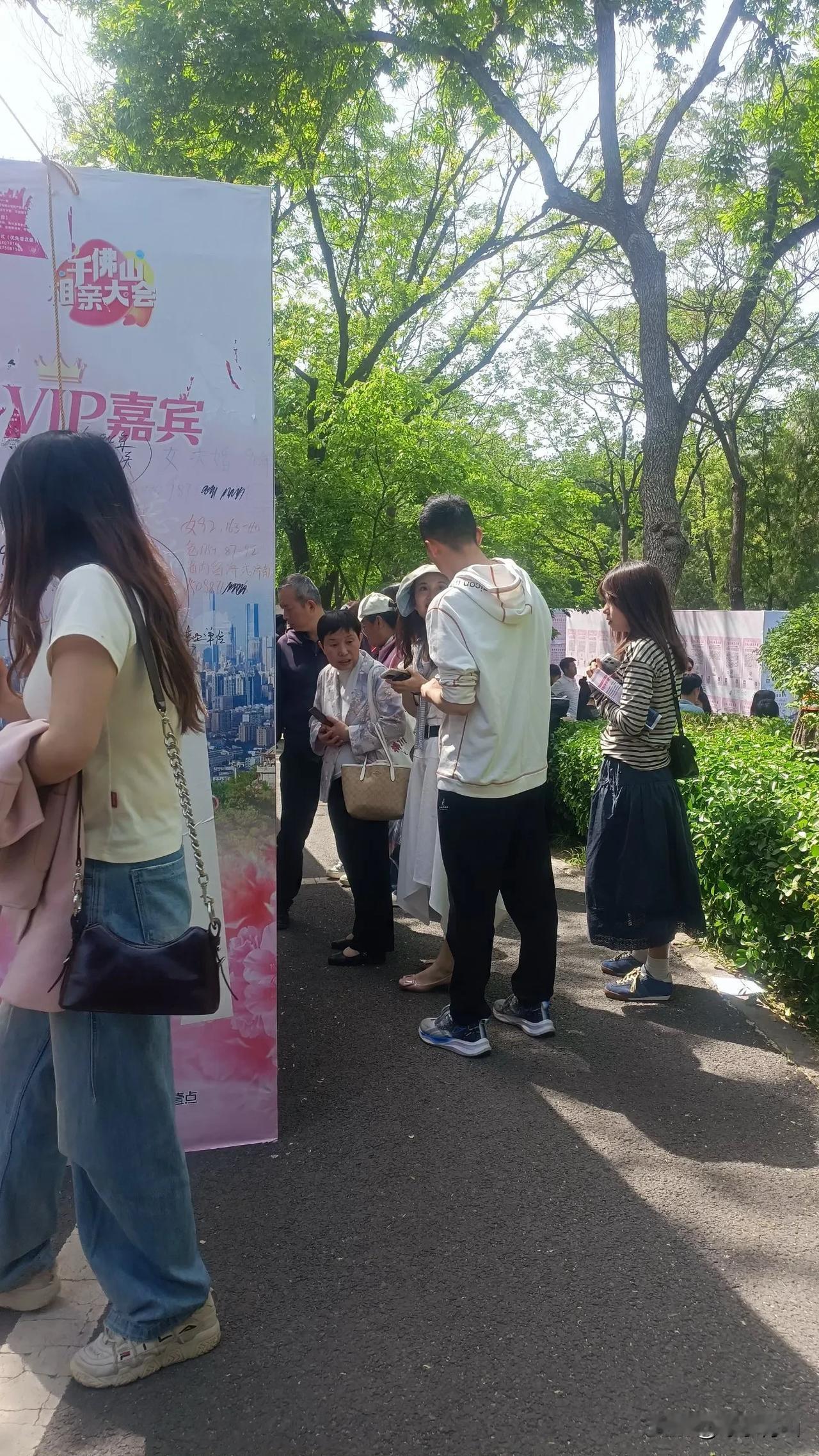三月三千佛山相亲会 三月三来春正酣,千佛山下寻佳缘。 红牌人讯千人看,笑语盈