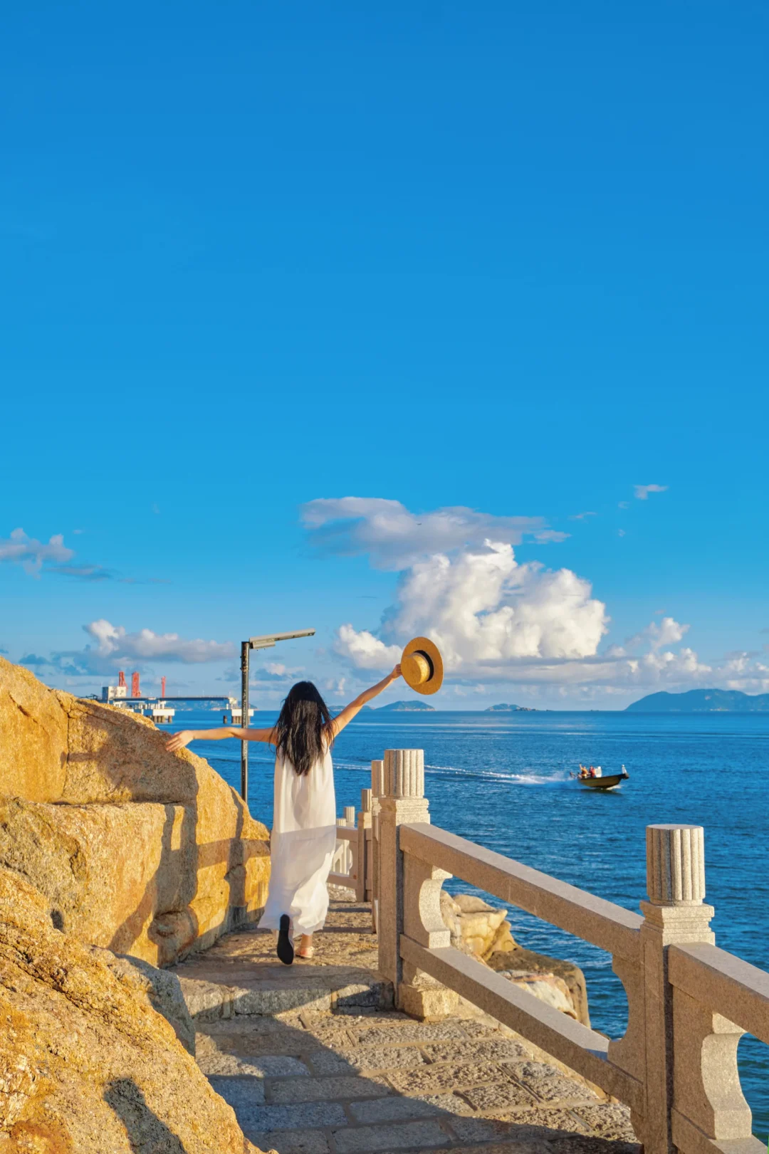 🔹桂山纪念公园:蜿蜒的沿海礁石栈道,蓝海与橘色礁石拍照很好看