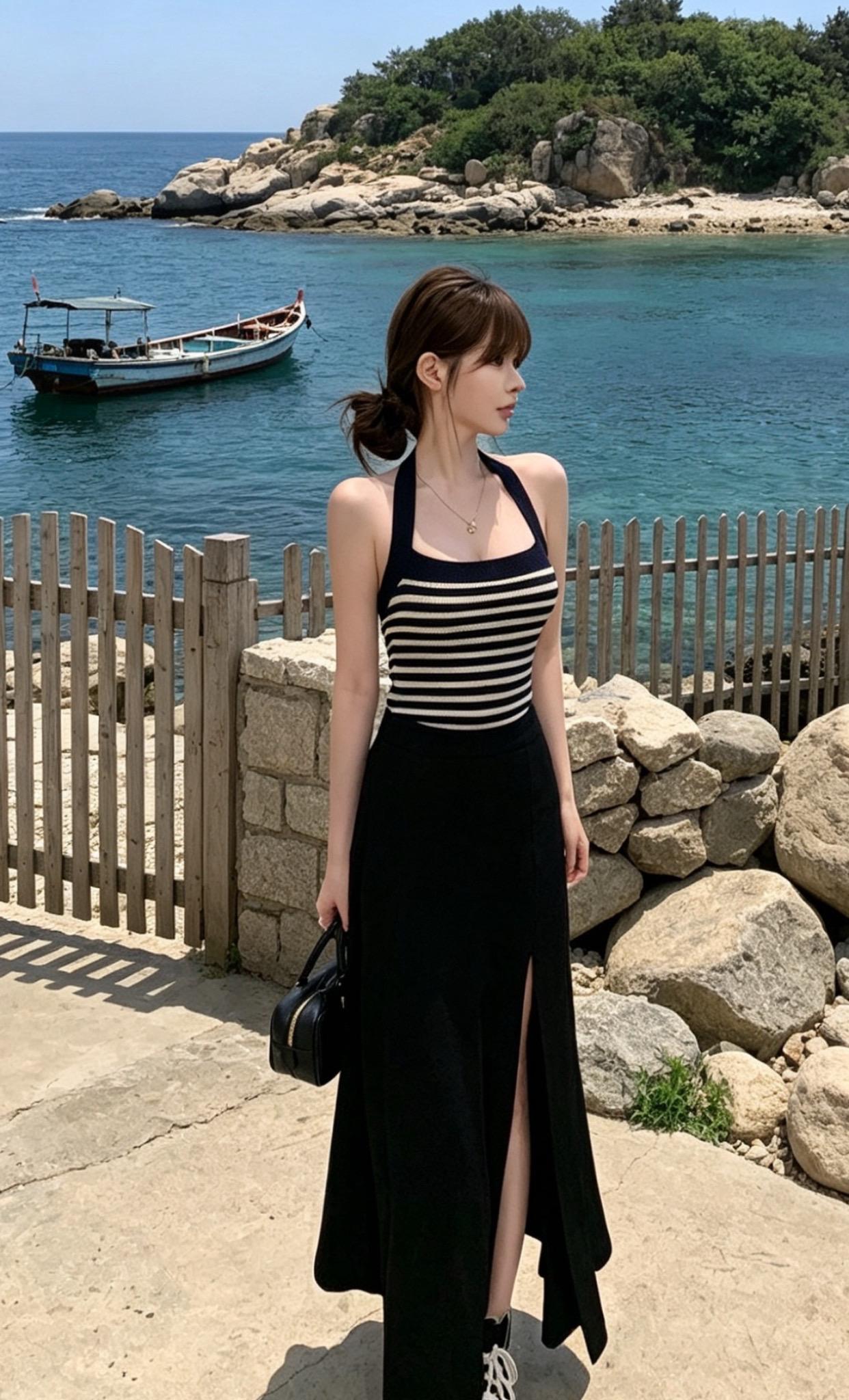 挂脖显瘦长裙 气质这一块拿捏死死的