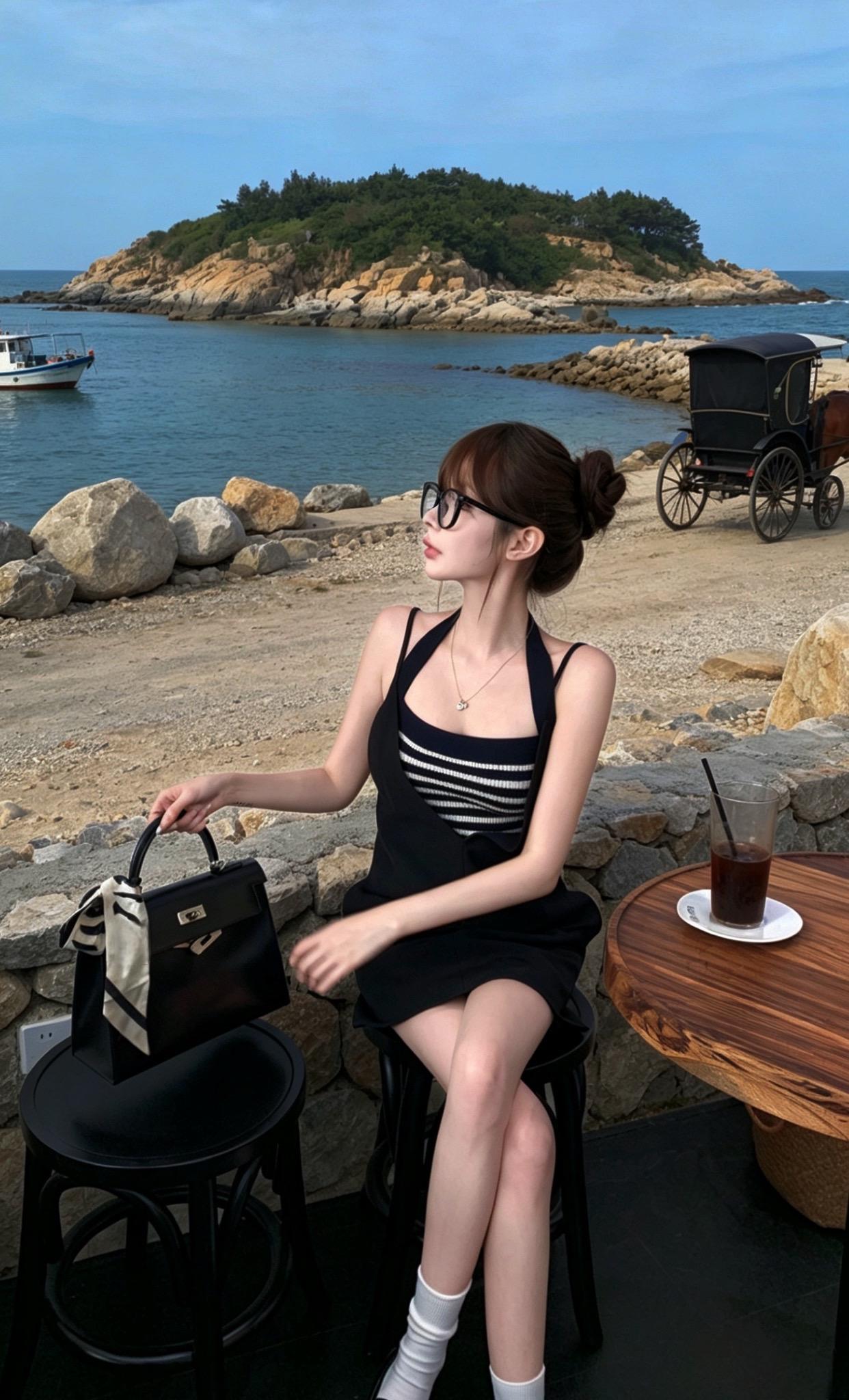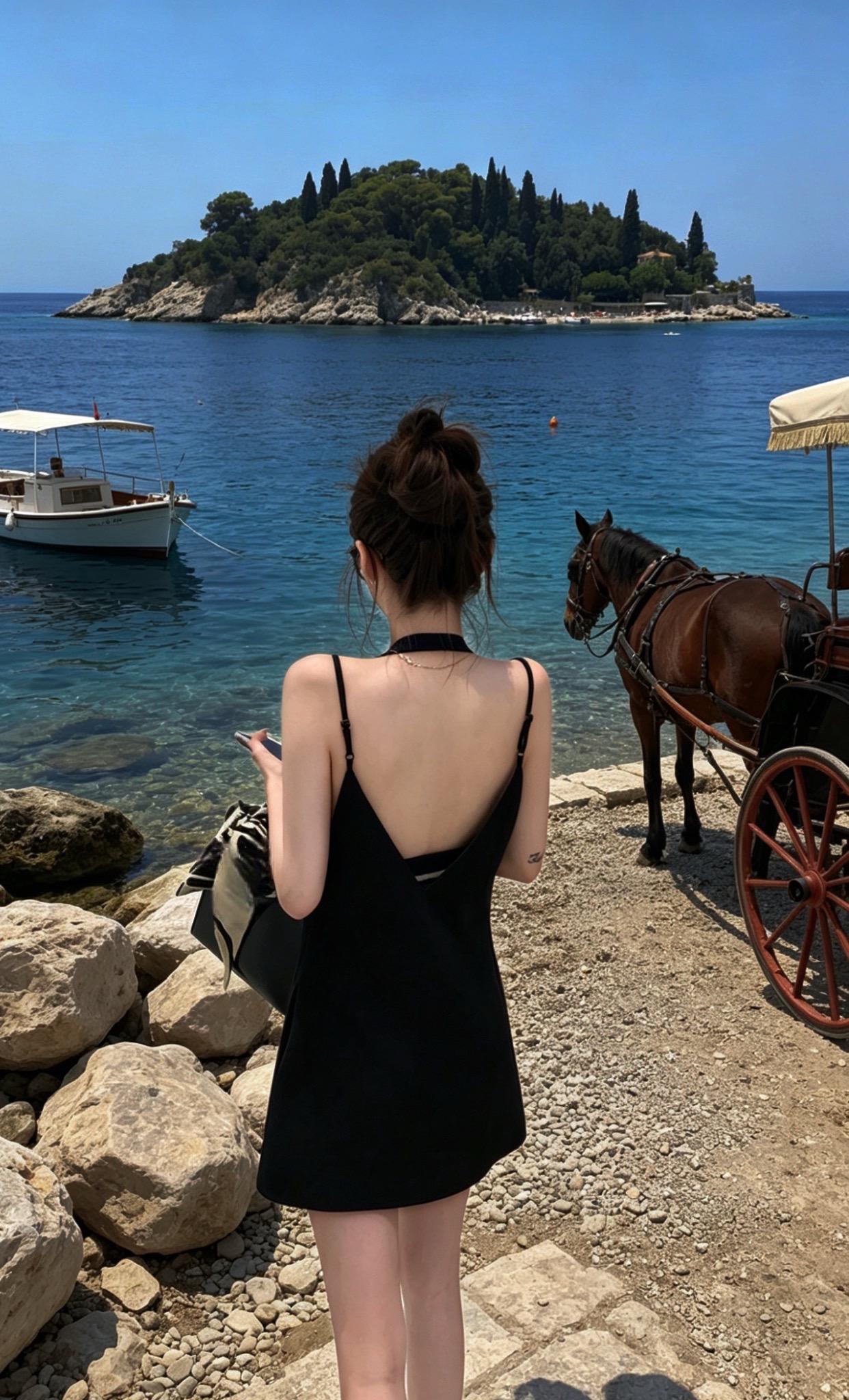 辣妹穿搭 穿搭 度假穿搭 黑色露背吊带裙