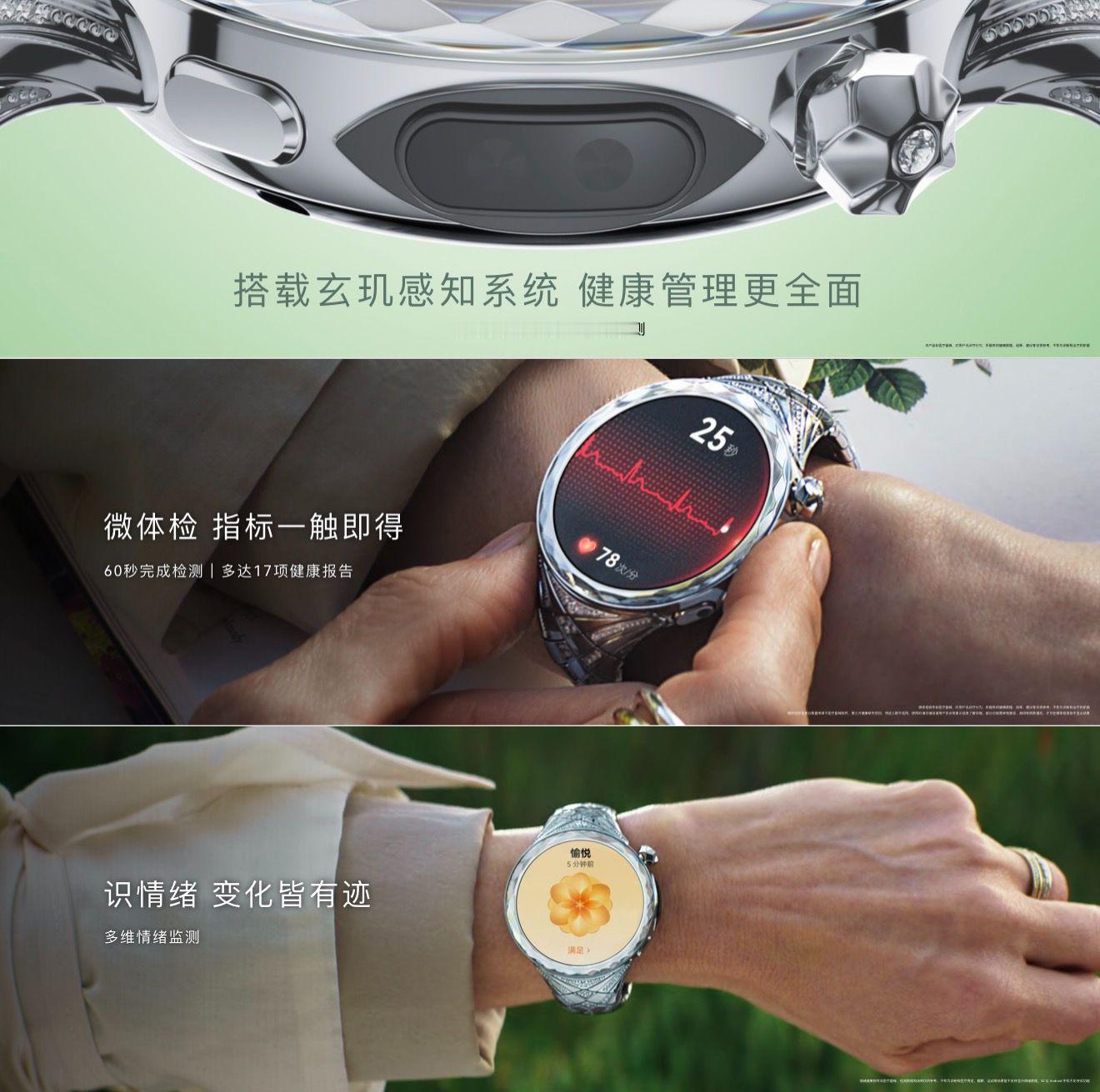 人的心情是可以突然变好的这才是女性高端市场该拥有的腕上智慧高定!由Tiffany&Co.史上首位女性设计总监、Louis Vuitton前腕表与珠宝艺术总监Francesca Amfitheatrof,与华为首度合作,将其对奢侈品美学的深刻理解注入产品。除此之外HUAWEI WATCH ULTIMATE DESIGN 非凡大师 星钻绽放款支持车表联动安全救援,事故发生时eCall自动求助并同步上报手表实时心率,抬手即得的支付体验让优雅不断联。HUAWEI WATCH 非凡大师 星钻绽放选择刘雯担任品牌大使,她的超模气质和华为星钻手镯表的契合度,让科技终于学会了像珠宝一样闪耀