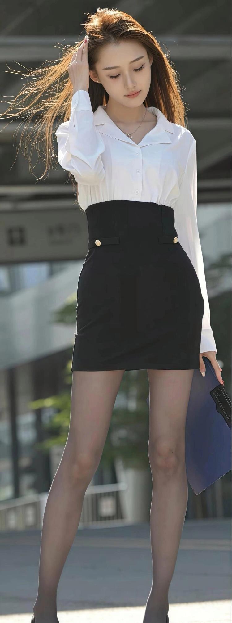 都市丽人风范,白衬衫黑短裙,自信步伐,职场精英范儿!💼✨