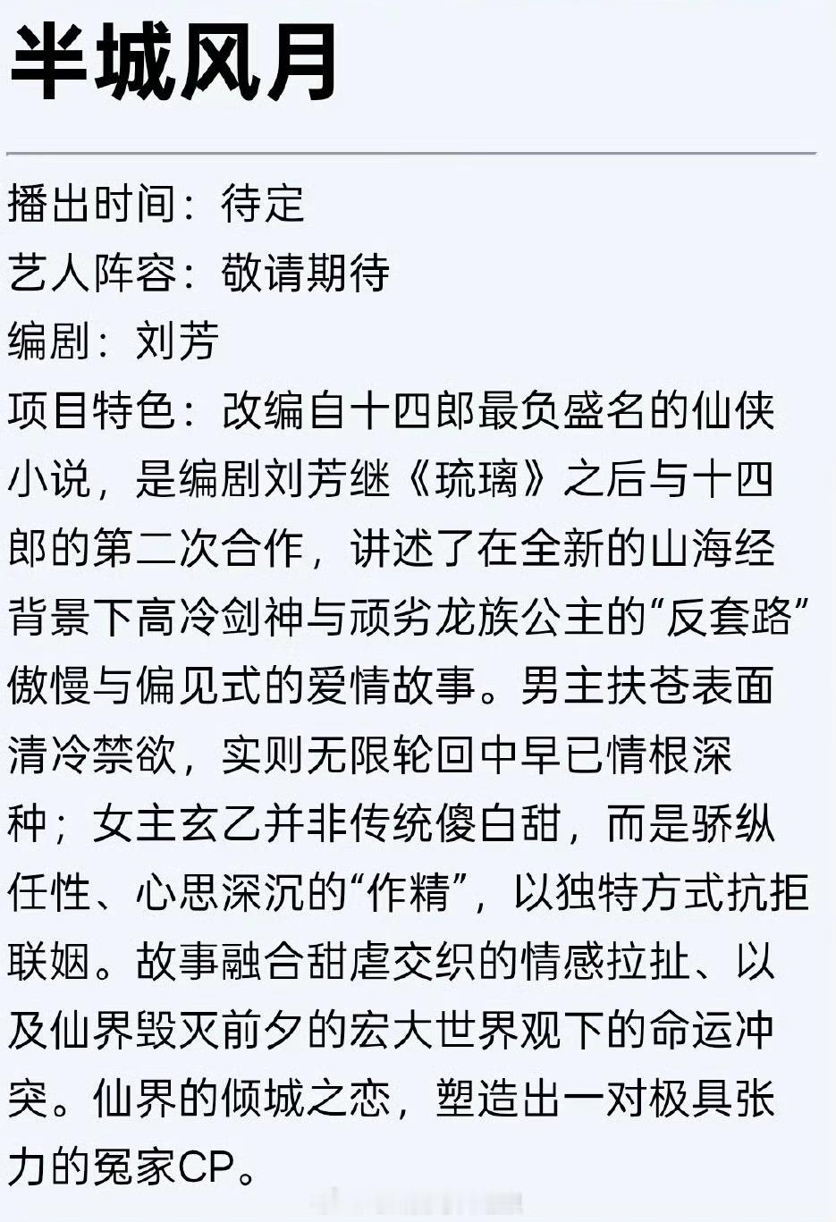 瓜主爆料仙侠剧《半城风月》男主暂定成毅,这次终于不是大男主了……不会再扑了吧