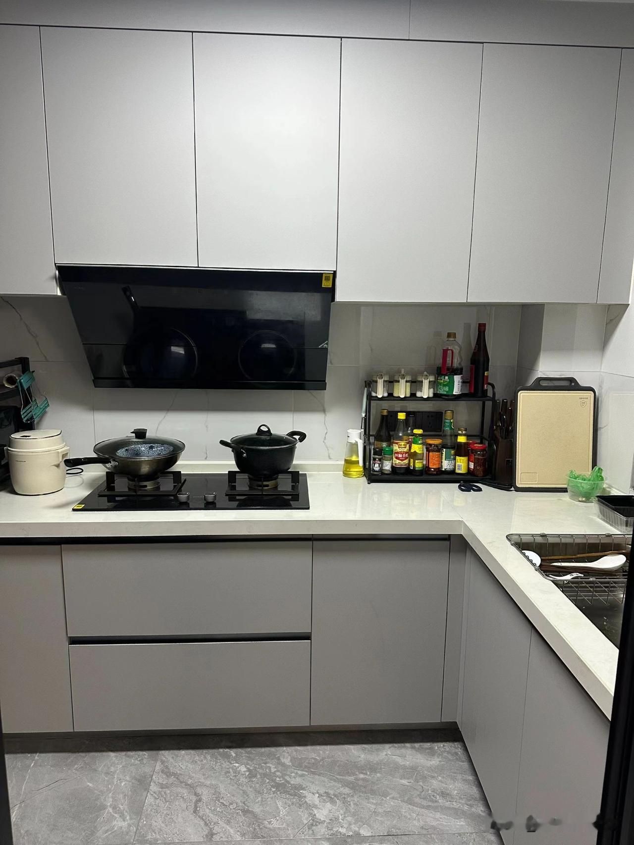 看着和厨房柜子统一,实际因为下水管挡着,门根本打不开或者只能开一半。里面的空间完全成了摆设,拿个东西得把手伸进去掏。