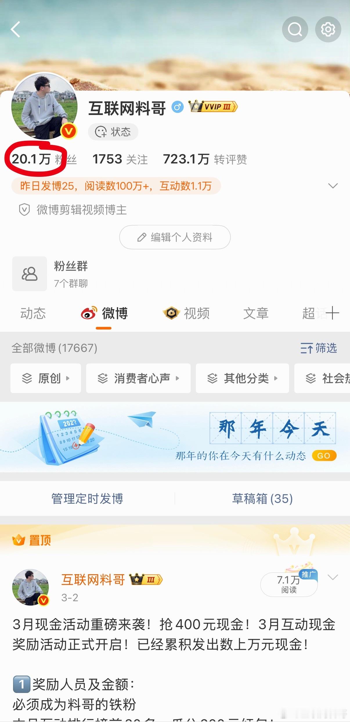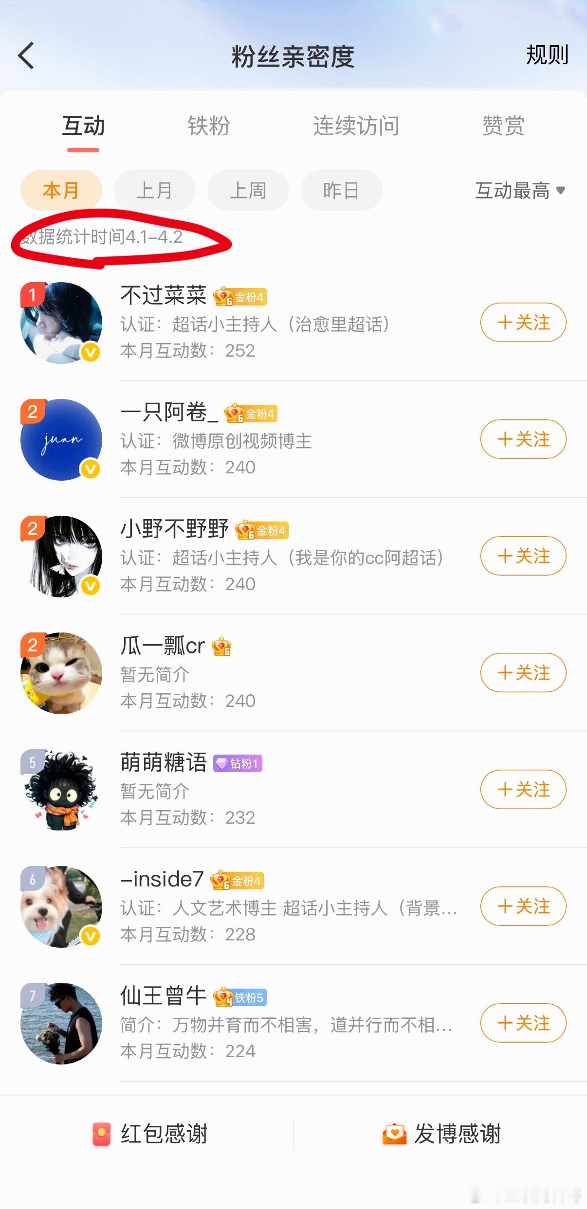 4️⃣查看排行榜方式:点击「互联网料哥」粉丝数,再点击「互动榜」即可查看完整排行榜!