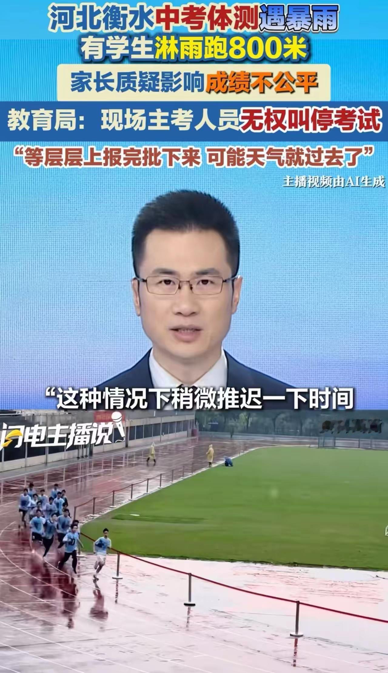 家长的愤怒很快烧到了教育局:“为什么不叫停?主考人员就在现场,眼睁睁看着孩子淋雨跑,这不是失职吗?”