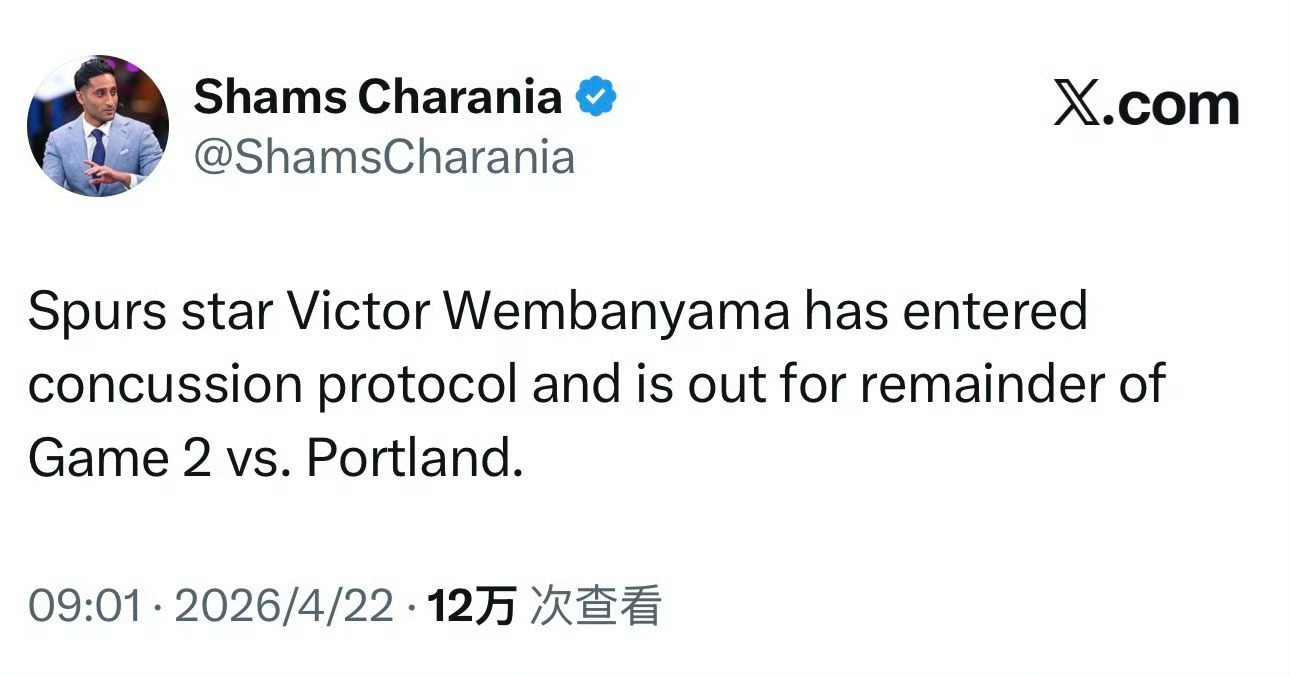 文班亚马,脑震荡保护协议,退出本场比赛!