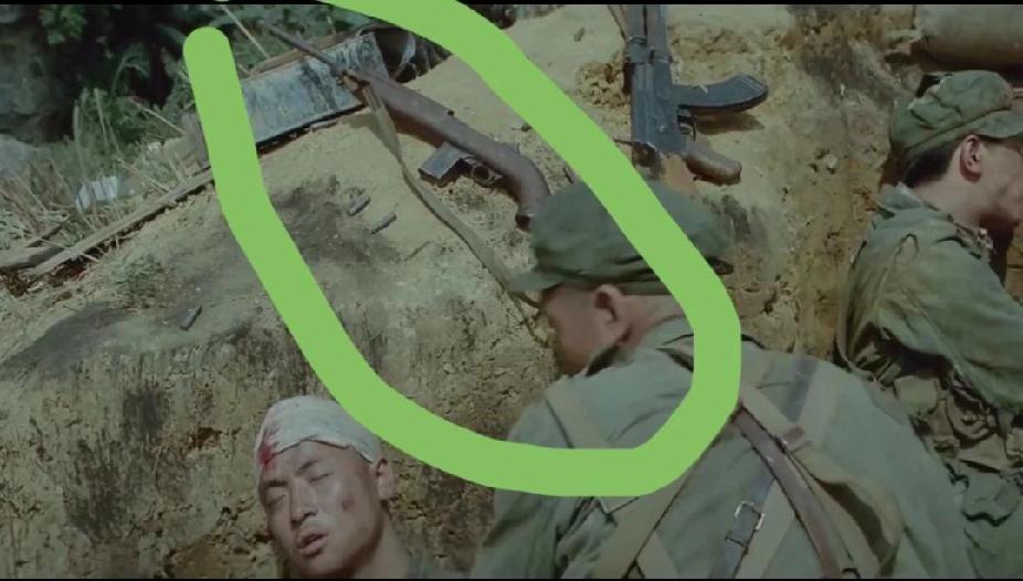 [军械话题]这把枪到底是什么来头?这是梁三喜九连冲上敌人阵地后,敌军逃跑丢弃在阵地上了。