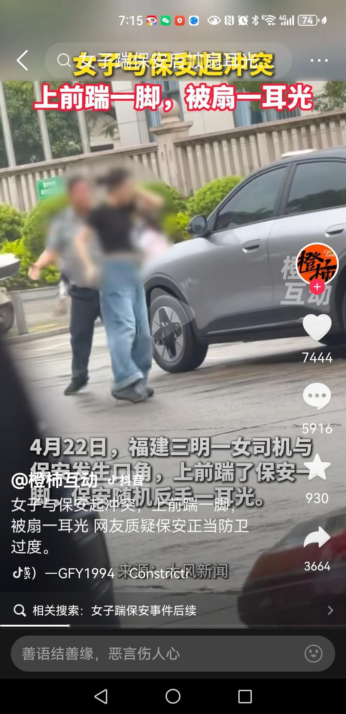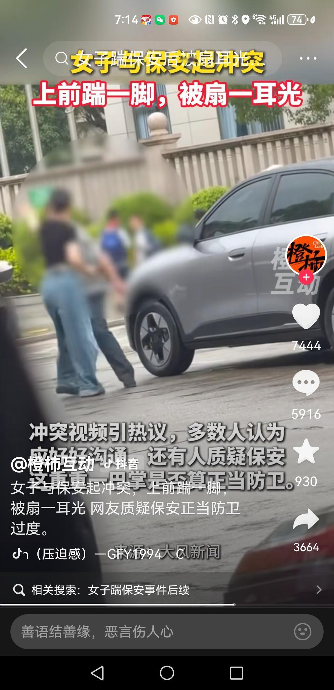 这保安,也不是吃素的。反手就给这女的一巴掌,脆响脆响的。