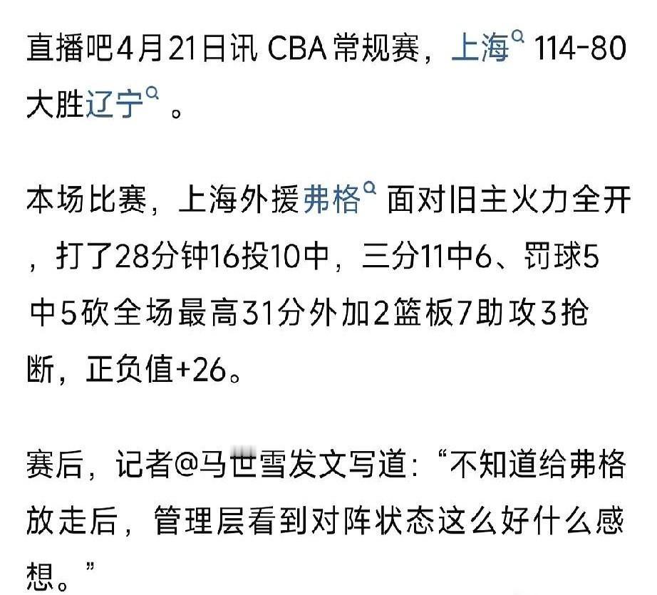 辽宁队放走弗格,是不是昏了头?