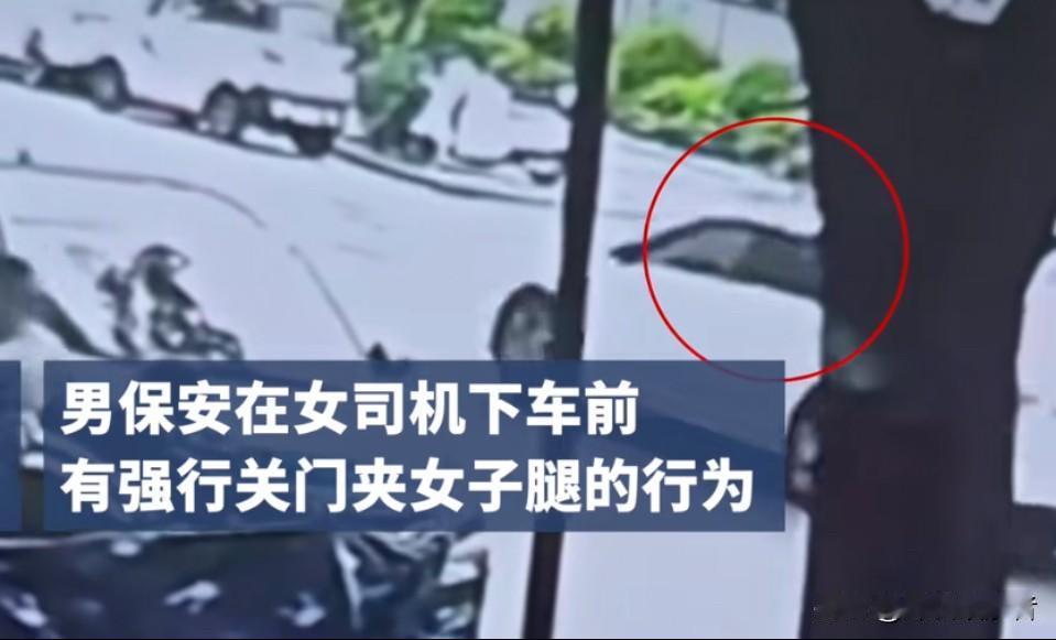 我们复盘一下事情的经过:男保安在学校门口维持秩序,女司机可能停在不该停的地方,一般像这种情况下,应该釆用口头劝离的方式,而男保安却是强行关车门。