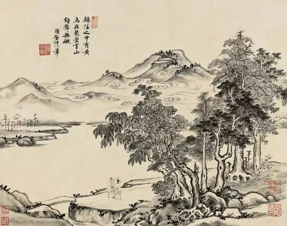 项圣谟,生于明代万历二十五年(1597年),卒于清代顺治十五年(1658年),出身于浙江嘉兴的大氏族,其祖父就是大名鼎鼎的项元汴。项圣谟自幼受家庭文化氛围的熏陶,耳濡目染,天资性灵。在绘画创作上,项圣谟很早就显现出了多方面的才能,在山水、人物、花鸟各个题材中,无一不精,无一不能,为时人所推重。项圣谟自发蒙之时,由家学起步,精研古代书画名作,在绘画领域成就斐然,影响了整个江南画坛。但他的才华还不仅仅局限于书画艺事,其学问素养也比肩于当时翘楚,曾由秀才被举荐为国子监太学生,但项圣谟对做官没什么兴趣,不求仕进,而把毕生精力投入到书画中,终成一代大家。这就是中国风遇见艺术