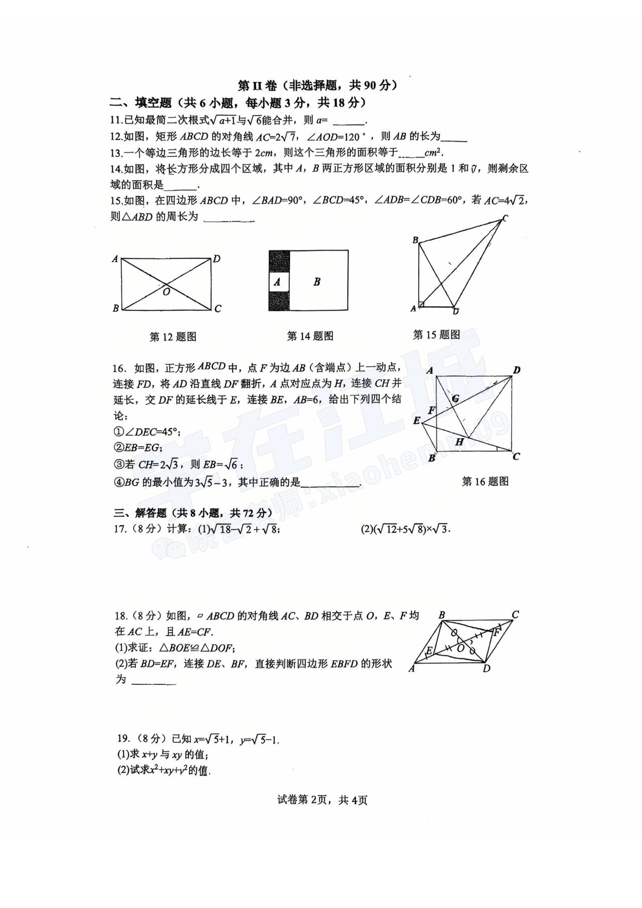 【八年级青山区(武钢实验)数学】2025-2026下学期期中试卷