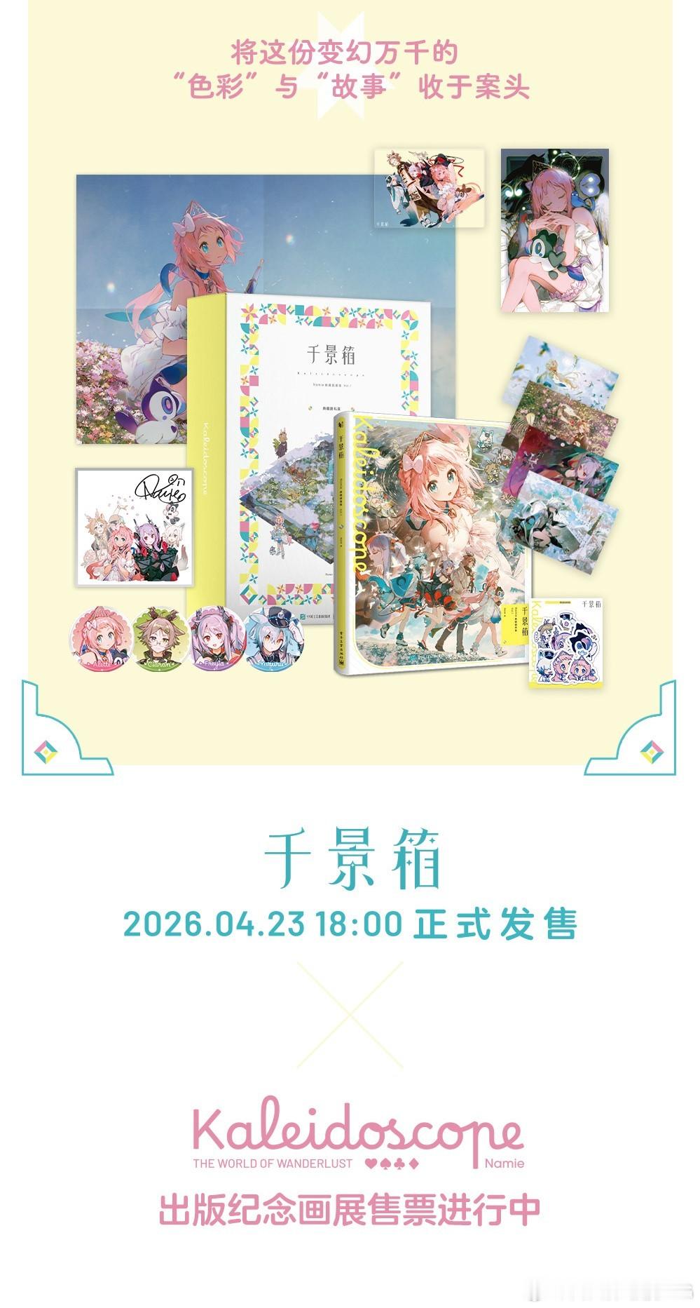收录2017-2025完整创作轨迹,从同人到人气游戏官方画师,八年蜕变一览无余老师首本个人艺术画集来啦!带你进入Namie的梦幻世界~ㅤ《千景箱Namie典藏插画集 Vol.1》限量典藏版📍发售平台:西西弗线上app⏰发售时间:2026年4月23日 18:00划重点:限量典藏版仅限西西弗线上有售,线下为标准版!ㅤ⭐插画集典藏版内容物⭐①千景箱Namie典藏插画集 Vol.1②“千景箱”主题明信片(4枚)③Alette:眠主题光栅卡④“千景箱”主题透卡⑤“千景箱”主题QQ贴纸包(10枚)⑥Alette:遥望 主题A3海报⑦“千景箱”主题印签色纸⑧“千景箱”主题徽章组(4枚)⑨“千景箱”典藏版定制书盒ㅤ✨独家近2万字深度访谈,揭秘与《FGO》《明日方舟》等IP合作幕后ㅤ✨完整原创角色“Alette”和她的伙伴们的故事ㅤ✨大16开本,双封软精装,收藏级质感upup!ㅤ ㅤ不只是画集,更是一本Namie老师的创作指南与内心独白,快来西西弗app入手吧!