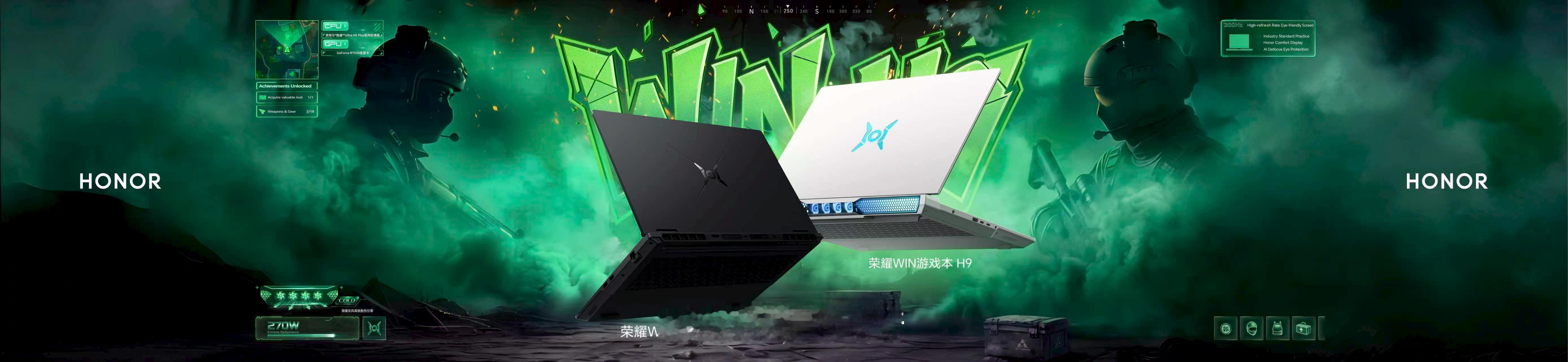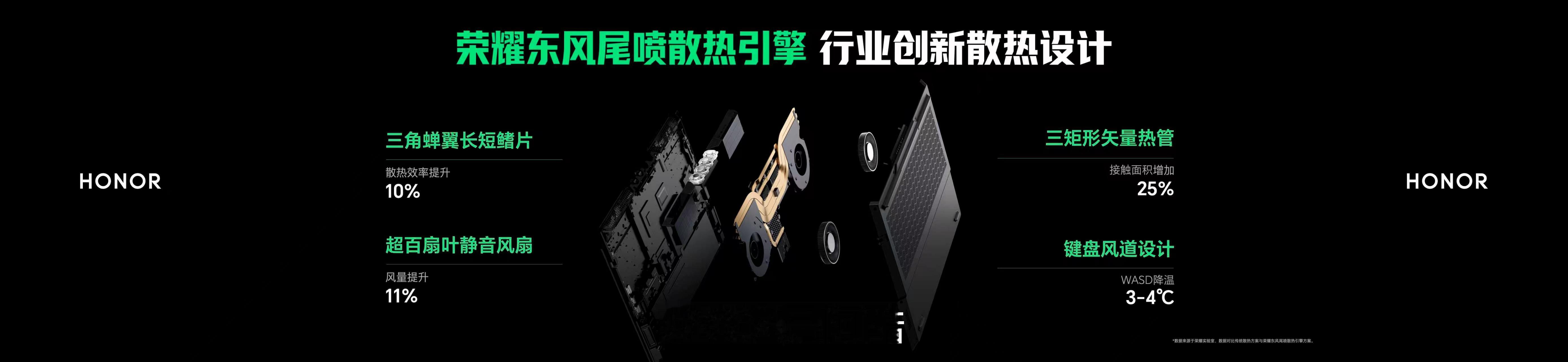 耀子自研东风尾喷散热引擎,强势挑战传统散热设计天花板,将荣耀WIN游戏本 的性能释放突破至270W,带来同配置下最极致的性能体验