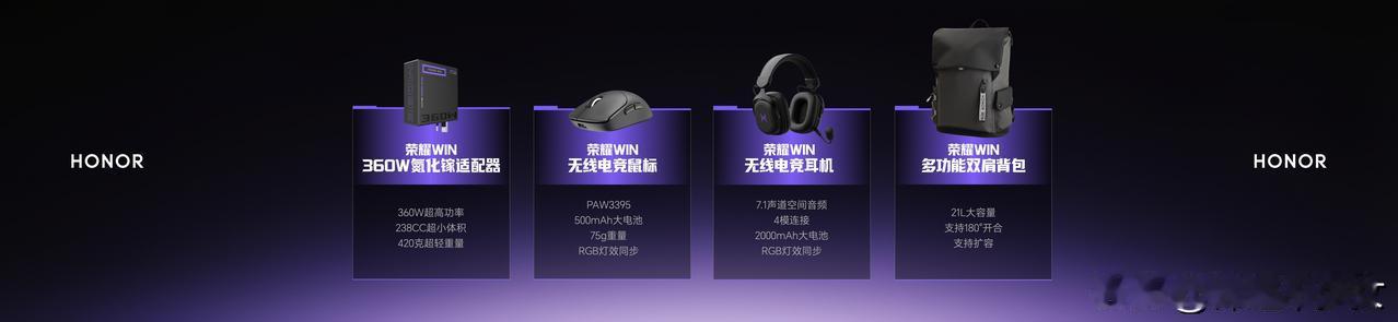 同时还发布了360W氮化镓充电器、无线电竞鼠标耳机、背包、支架等全套配件,一站式配齐电竞装备,电竞体验直接拉满。