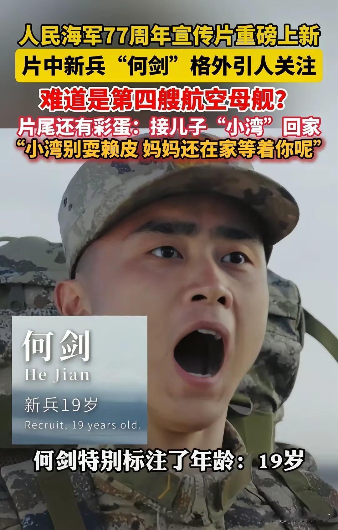 第四个是新兵何剑,19岁,你说他对应哪艘航母呢?引来好多猜测!