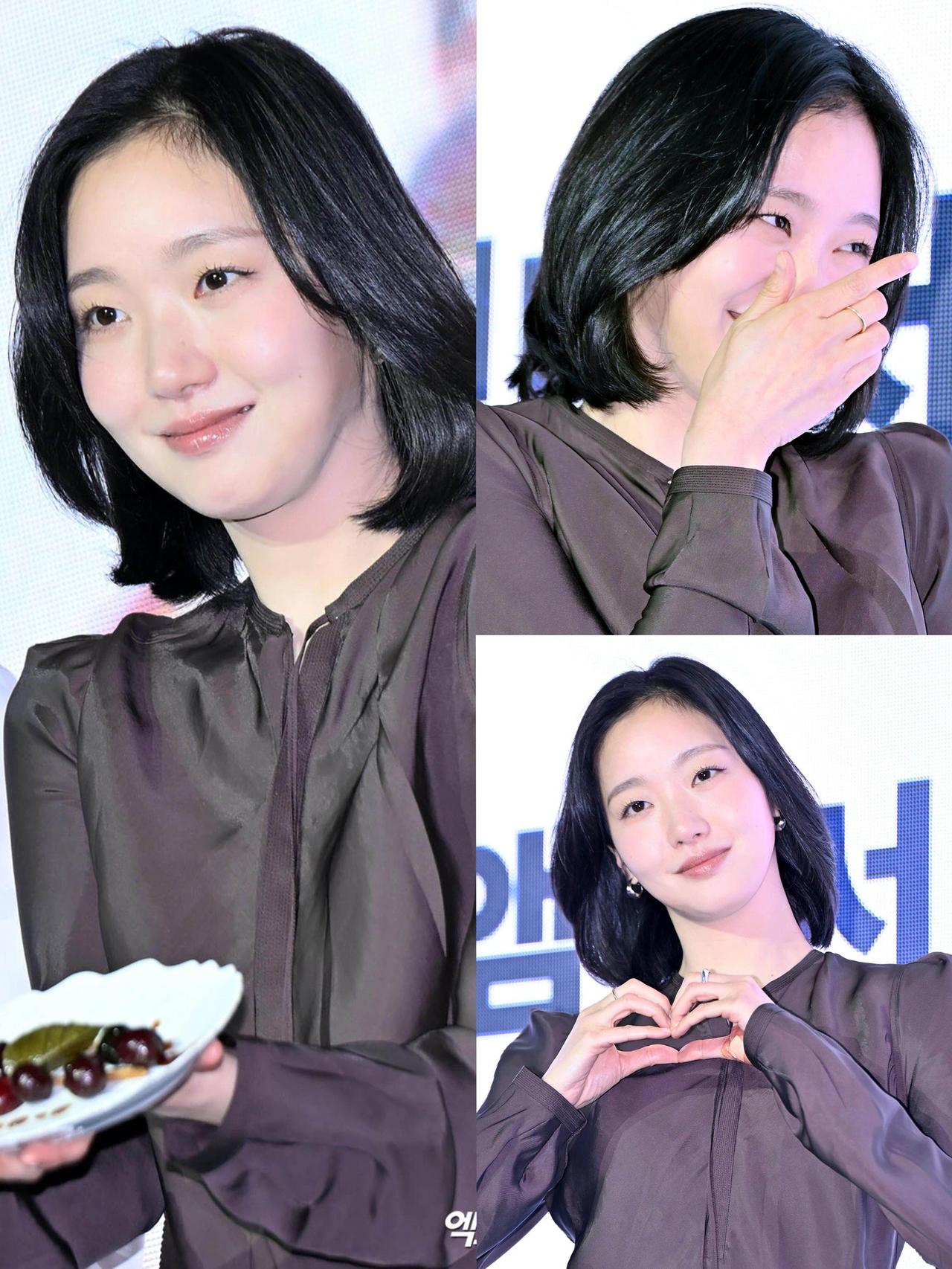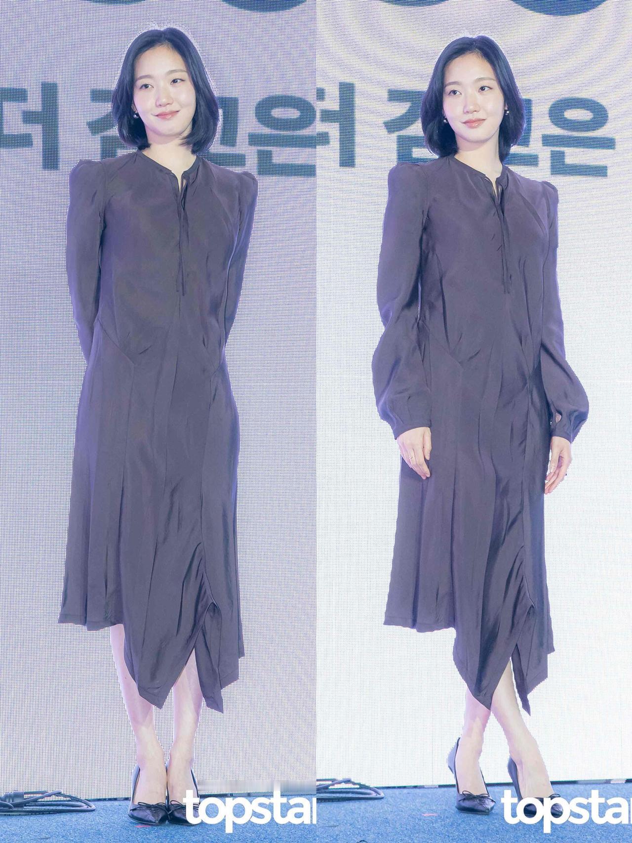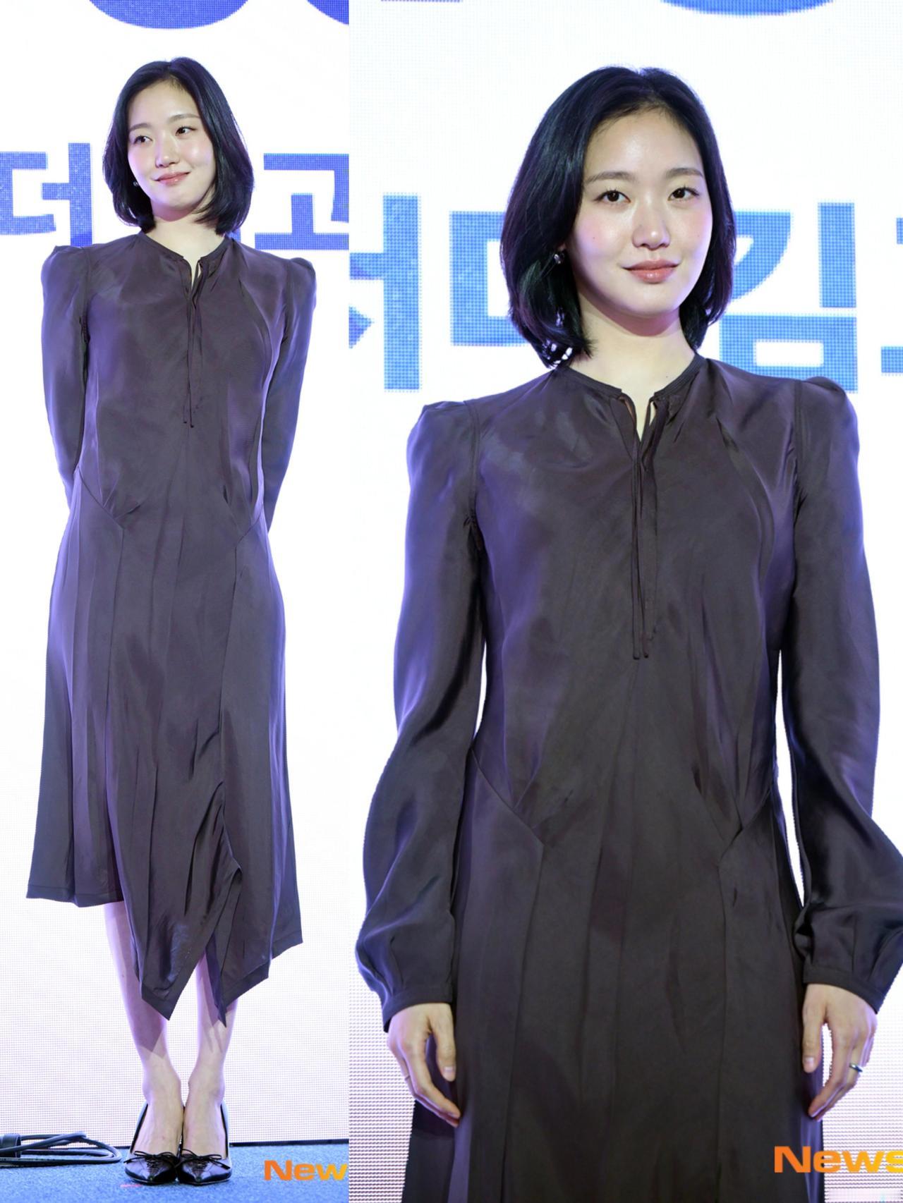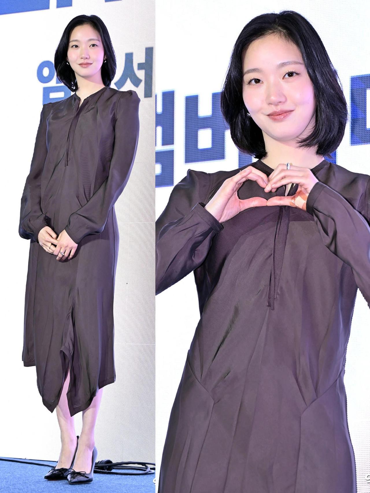 她身穿深棕缎面连衣裙,垂坠感面料自带柔和光泽,不规则裙摆随性又高级,搭配尖头高跟鞋,衬得身姿纤细修长。利落短发与低饱和色调呼应,妆容清透温柔,没有多余装饰,却把松弛知性的气质拉满,简约又显贵的造型太适合她了。