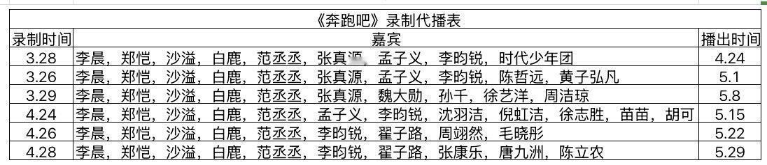 《奔跑吧》最新录制待播表