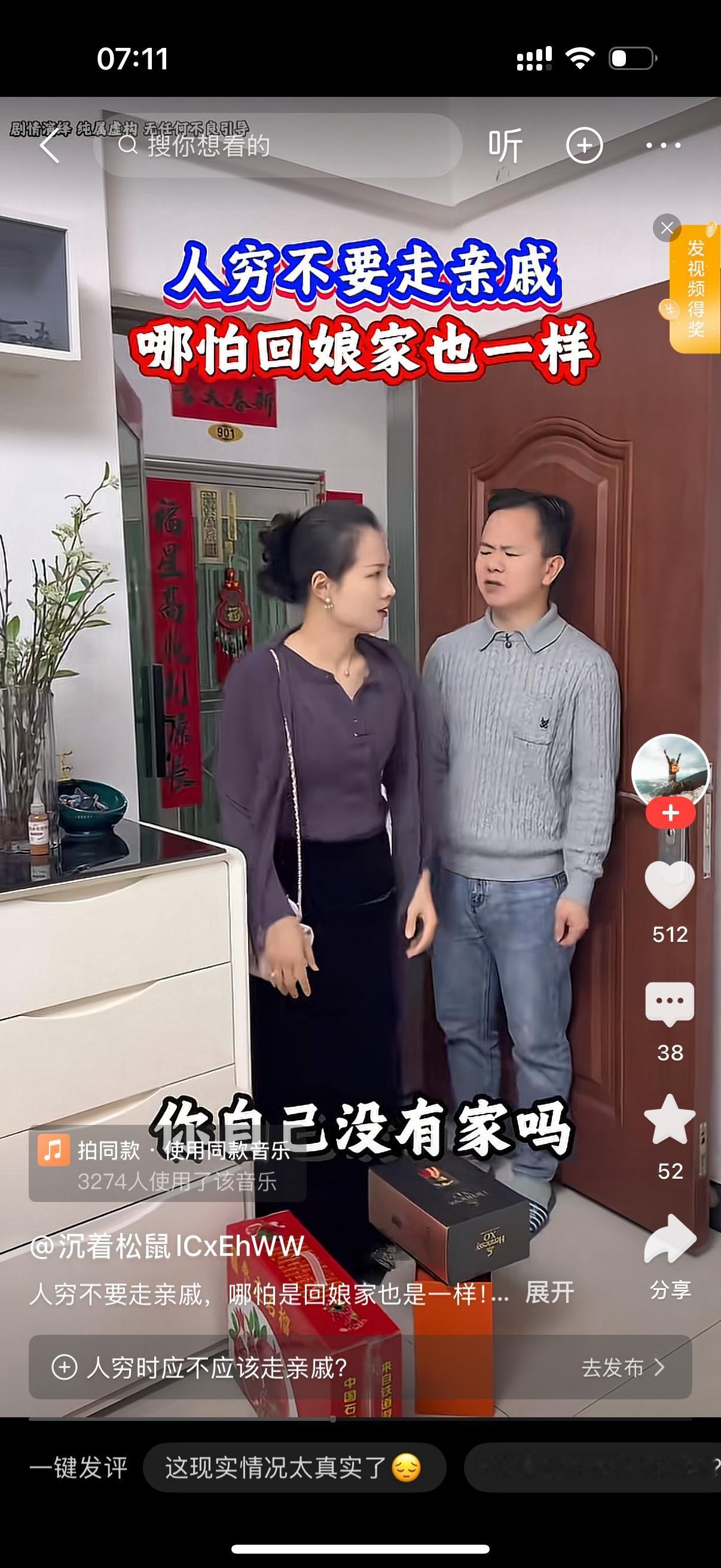 妹妹带着礼物高兴地回娘家。哥哥一脸嫌弃地说,你怎么又来了?你自己没有家吗?妹妹听到这话,悲从中来,她拿起礼品,转身就走。哥哥却在后面大喊,你干啥啊?东西给我留下来。妹妹心里那个痛啊,人穷不要走亲戚,哪怕是亲哥哥都会嫌弃你,父母也不待见你。
