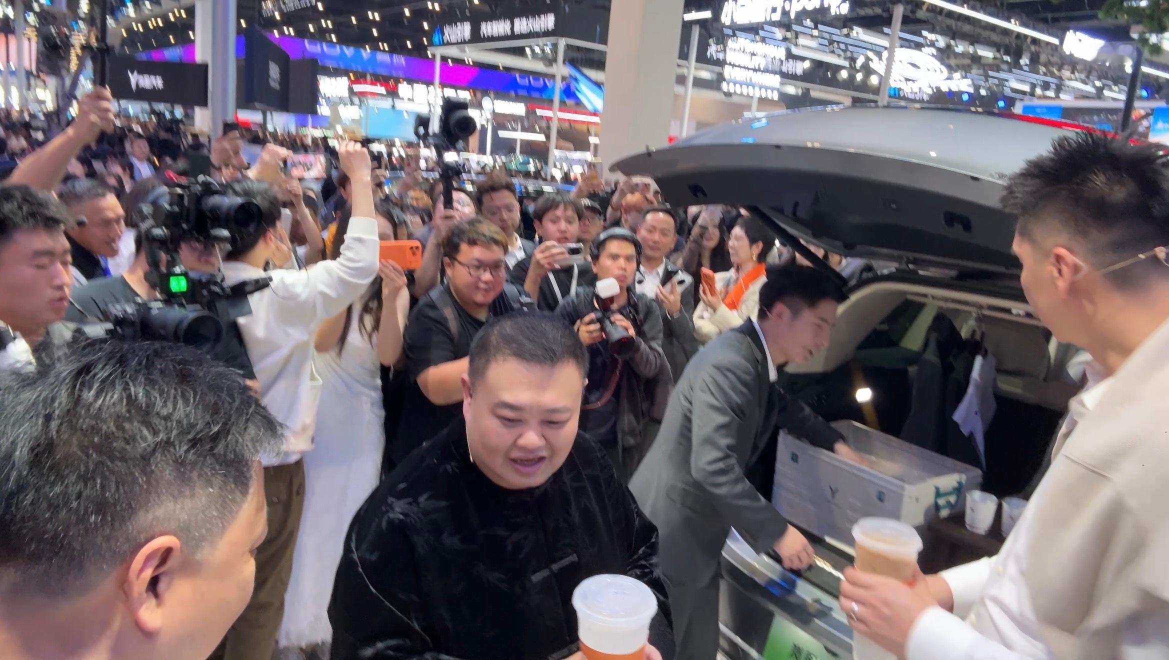 车展逛累了,赶上孙悦和孙越从岚图泰山X8后备箱里拿出来冰镇奶茶发我手里了,这是什么运气 北京·首都国际会展中心