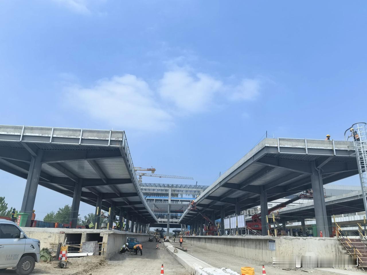 目前,该工程的主体结构已完成封顶,并正式转入金属屋面网架拼装施工阶段,新站房的整体雏形已经显现。