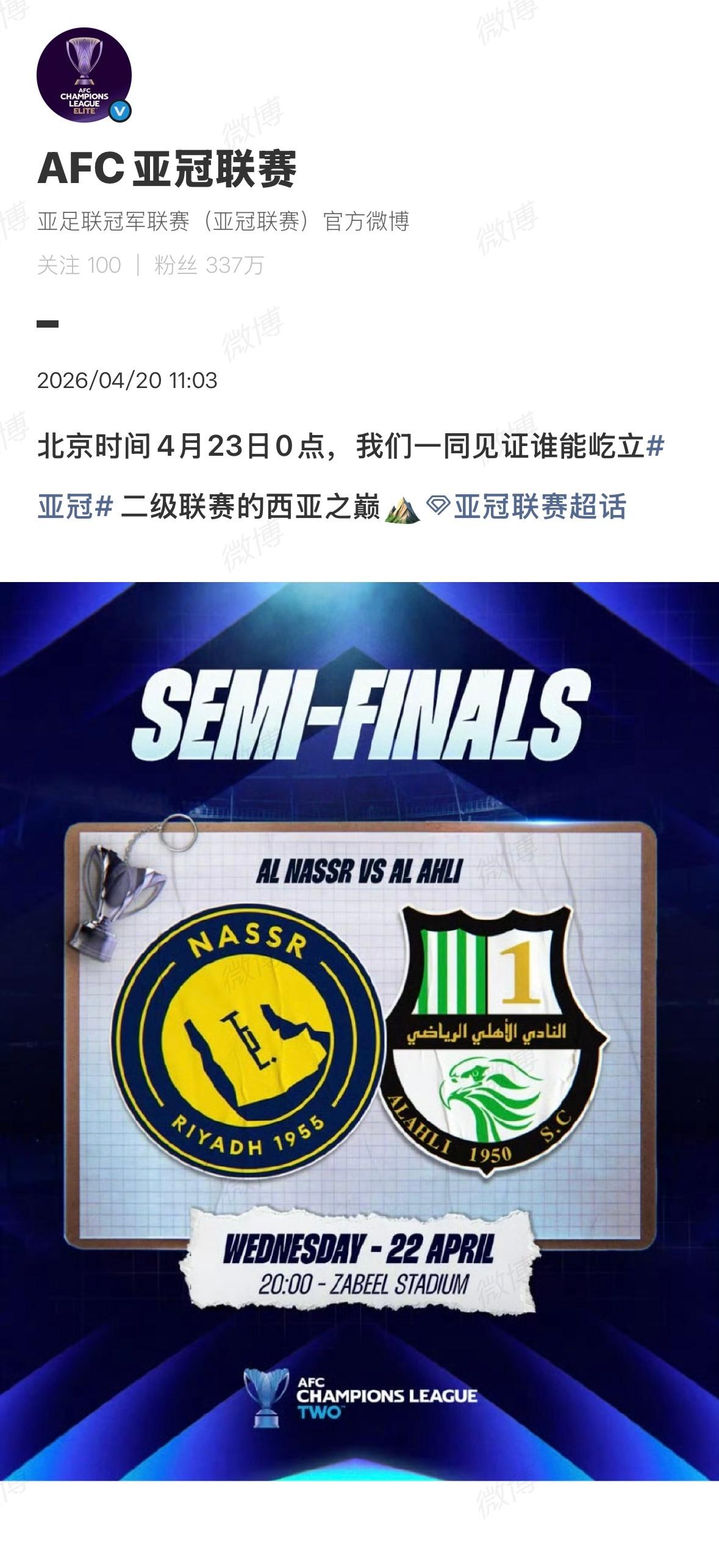 明凌晨0点 25/26赛季亚冠2级半决赛 利雅得胜利(阿尔纳斯尔)(沙超)VS多