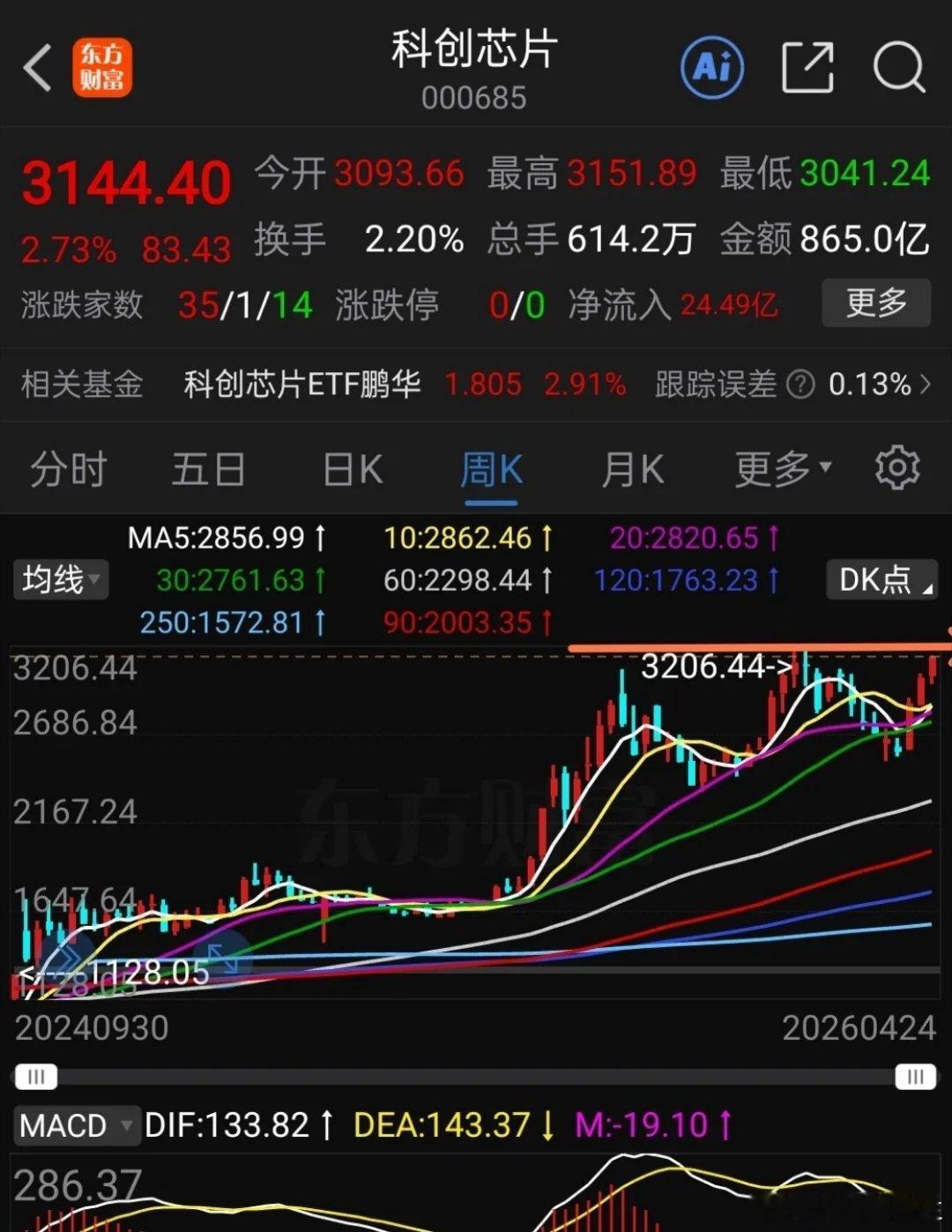 持有科创芯片的注意啦,今天科创芯片表现强势,盘中大涨近3%,目前如何操作?下图是