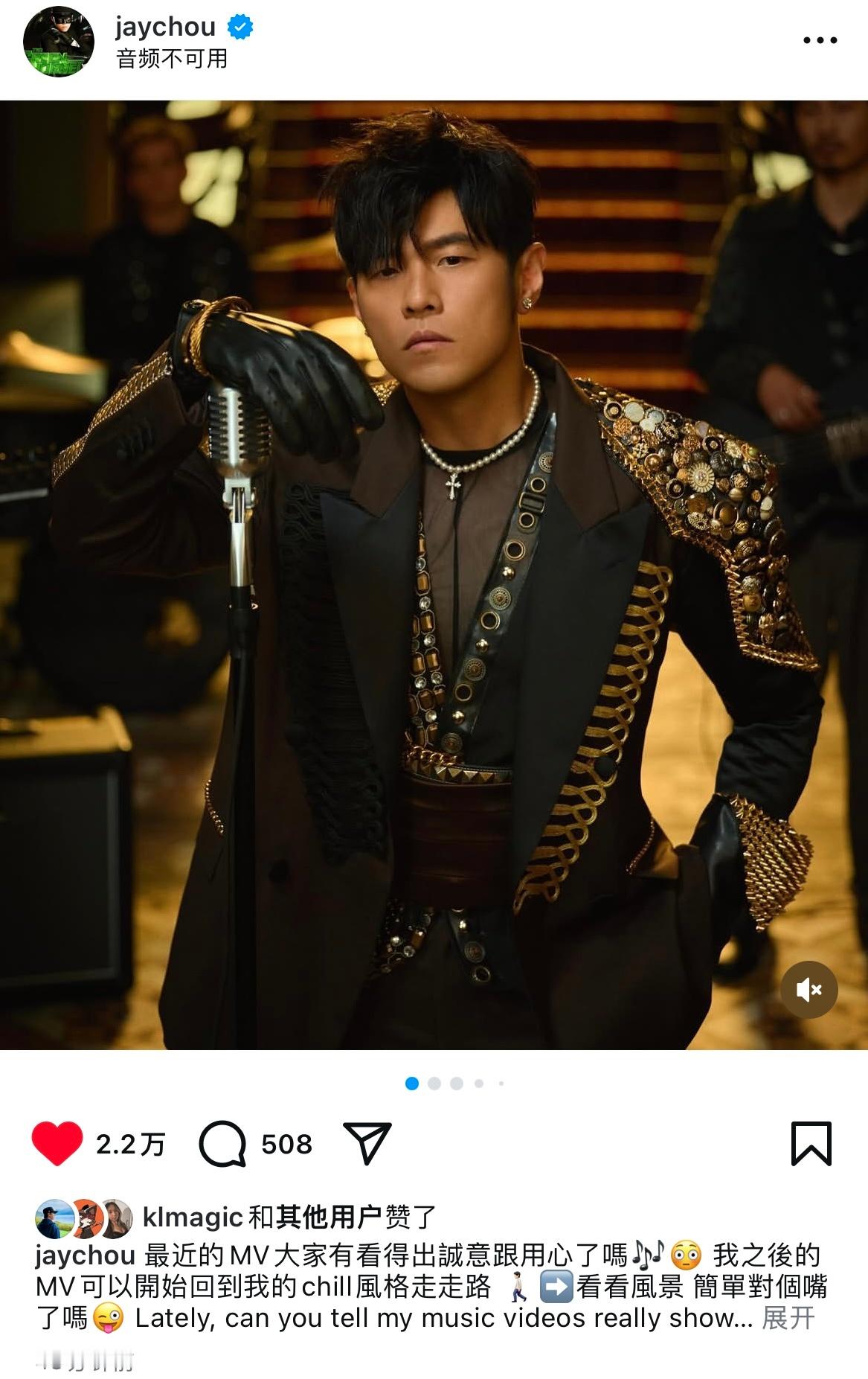 周杰伦更新动态:最近的MV大家有看得出誠意跟用心了嗎🎶😳 我之後的MV可以開始回到我的chill風格走走路 🚶🏻➡️看看風景 簡單對個嘴了嗎😜