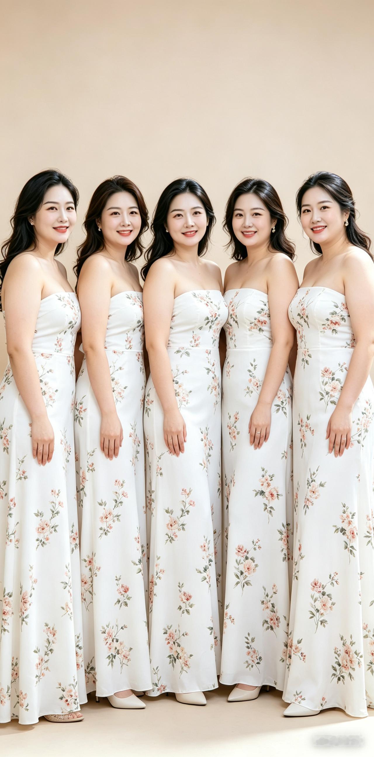 五个姐妹穿着同款礼服站在一起。 借此平台,谁是你心上人,留言: