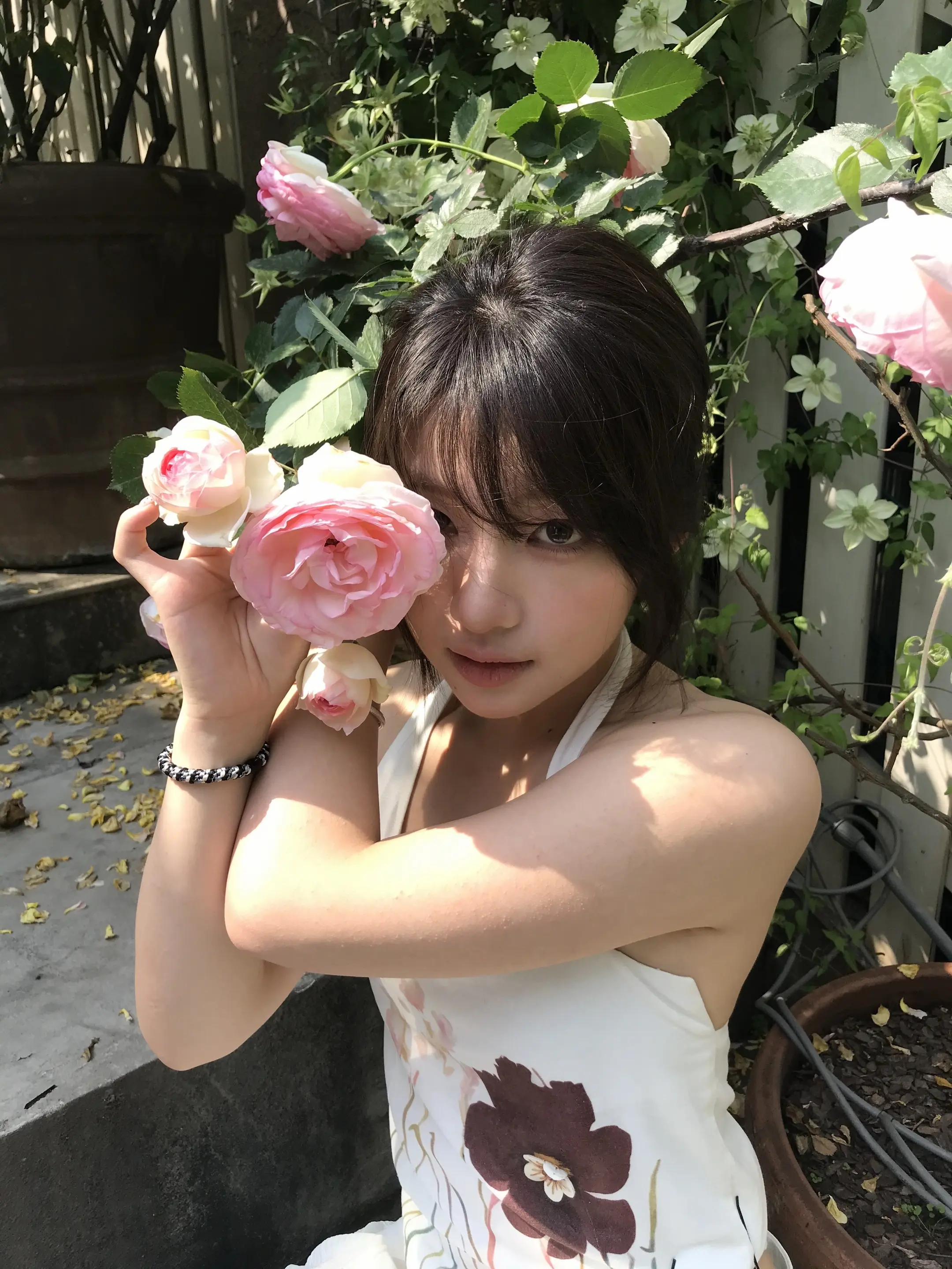 一字肩碎花裙+温婉盘发,王玉雯有颜有料