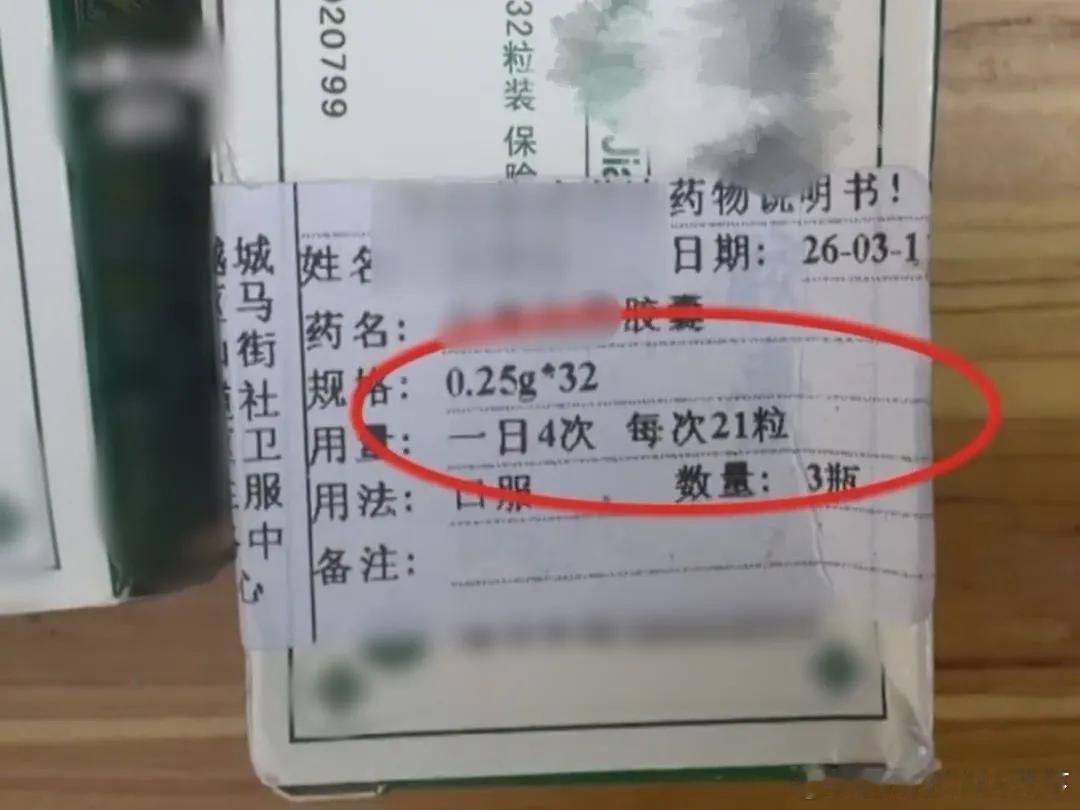 浙江绍兴一位应大妈因脚部受伤,到越城区马山街道社区卫生服务中心就医,结果院方开错了一种口服药的剂量,一次2粒变成了一次21粒,应大妈遵医嘱在一天内服用了42粒胶囊。