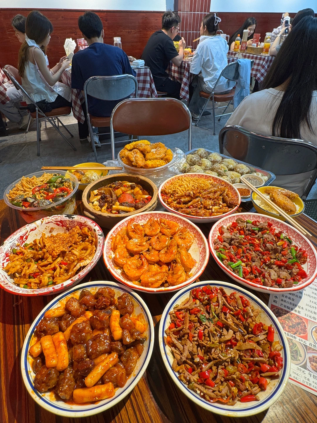 基本上饭点座无虚席!菜品份量扎实还好吃…