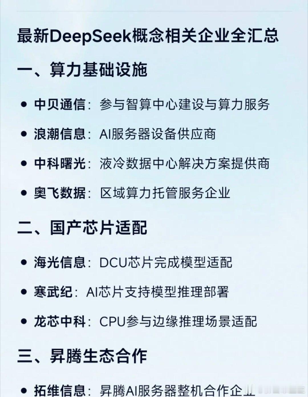 最新DeepSeek概念相关企业全汇总一、算力基础设施中贝通信:参与智算中心建设