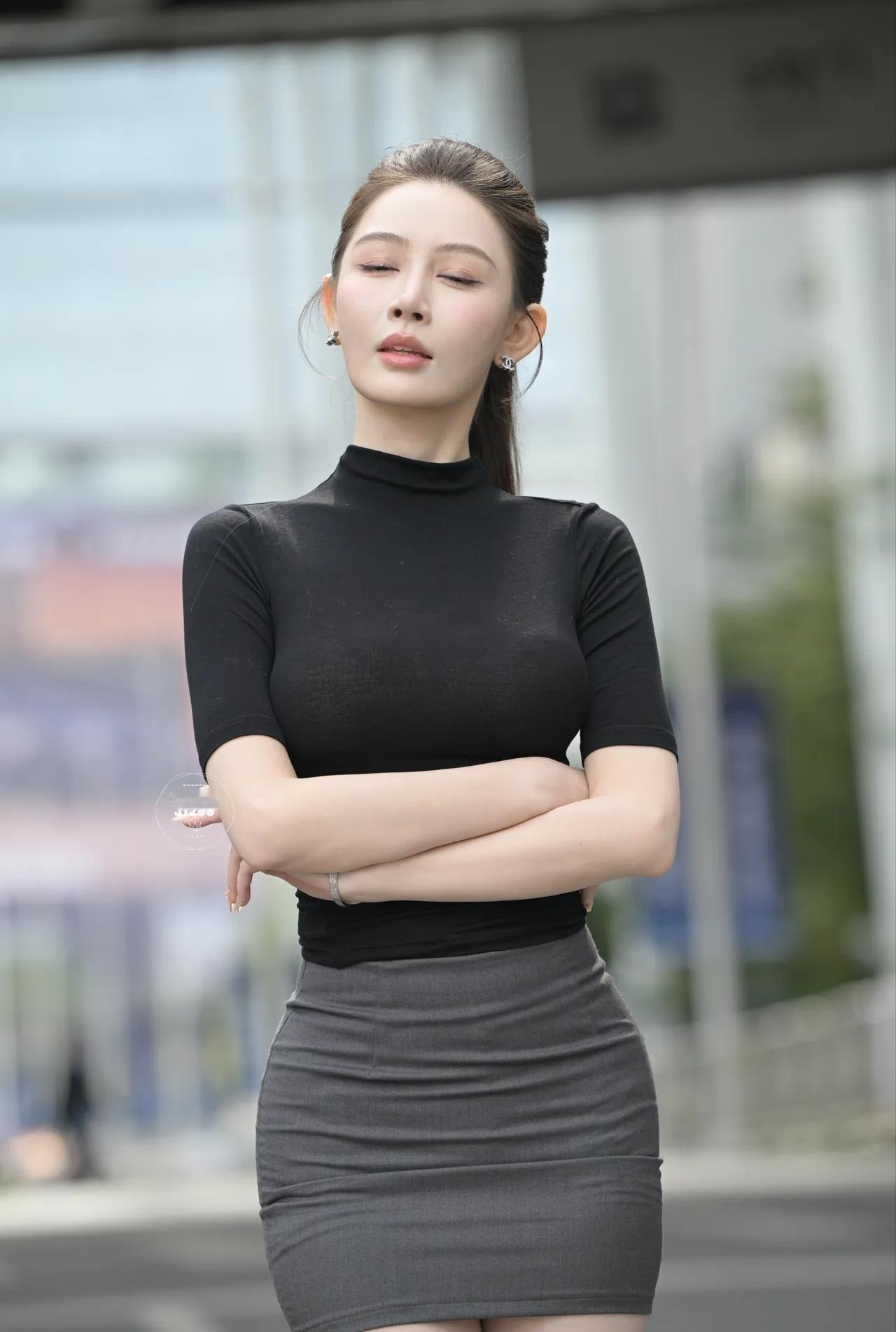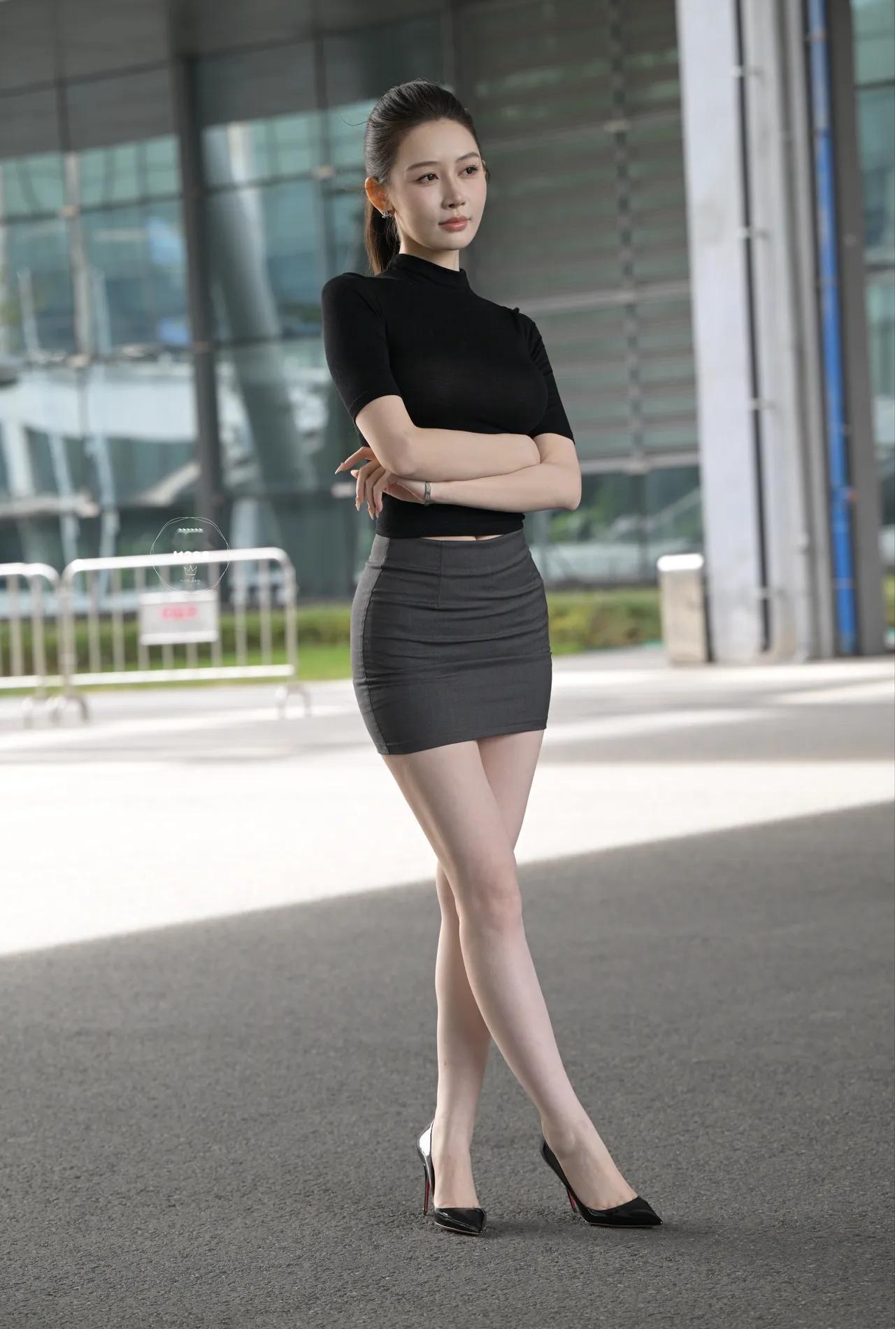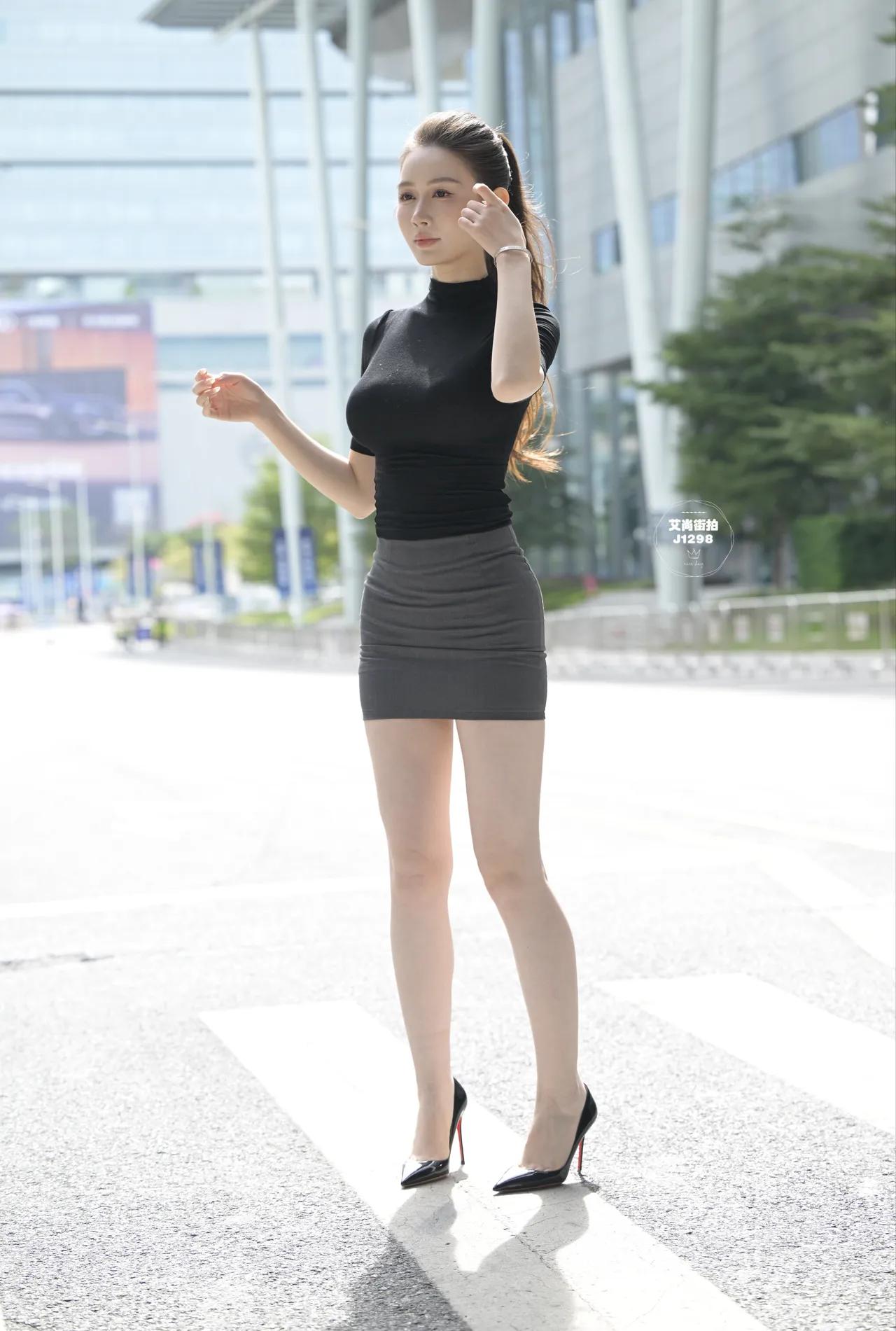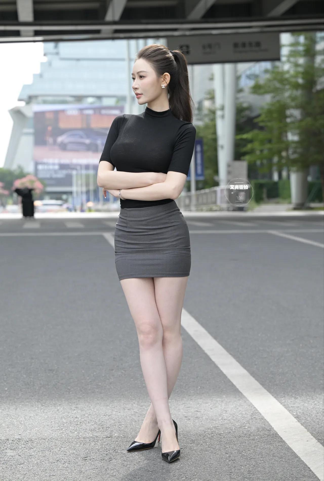 都市时尚女郎,黑衣短裙,自信姿态,都市风情。 车模敏敏长腿玉足[给力]