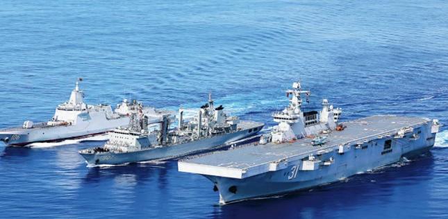四川舰从上海出航后抵达南海,与辽宁舰编队形成功能互补。