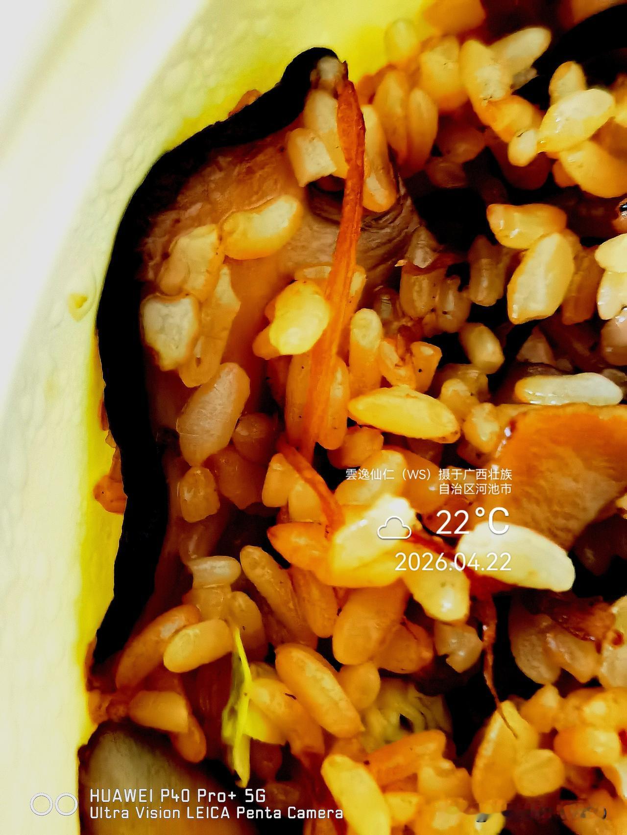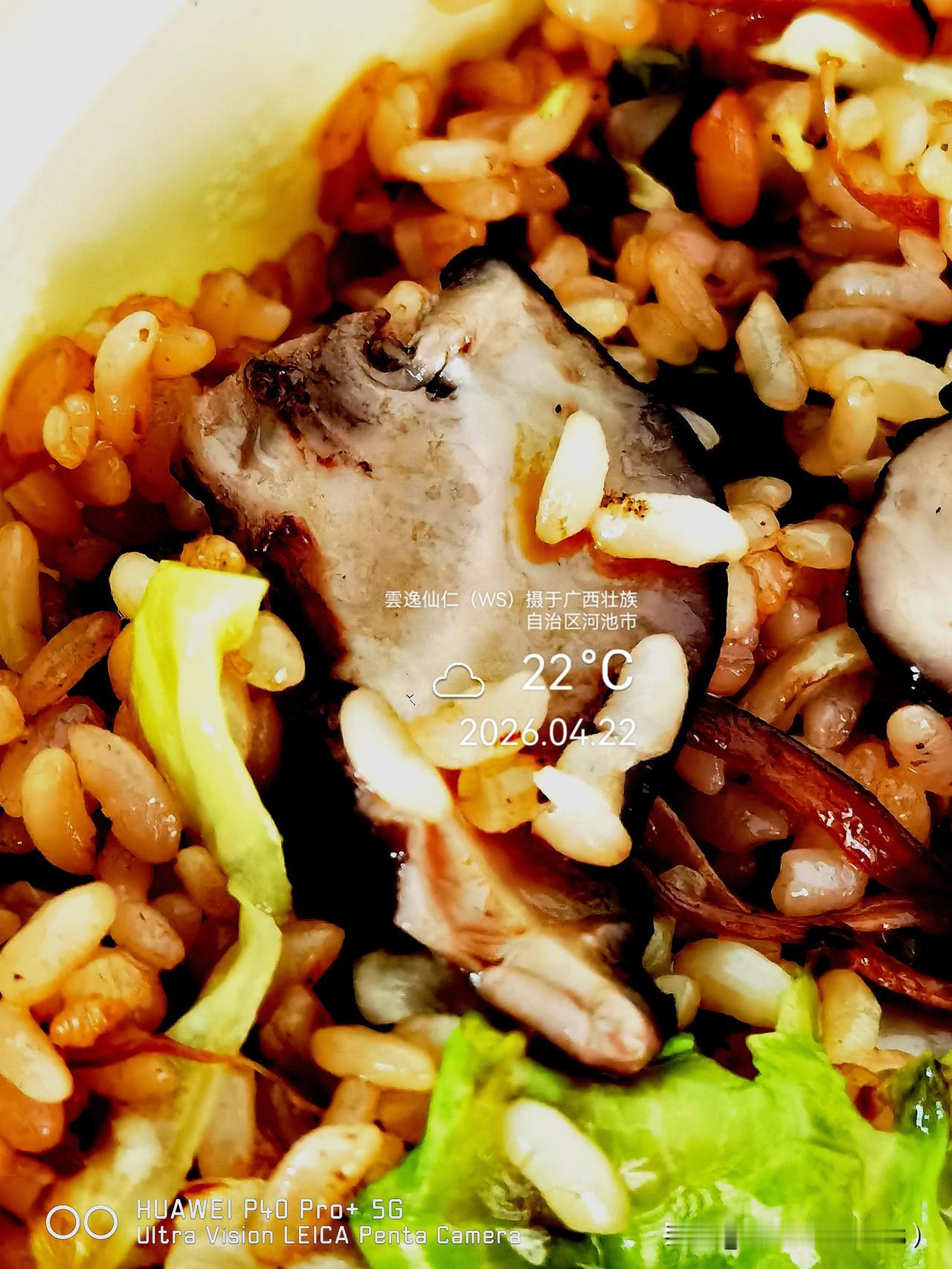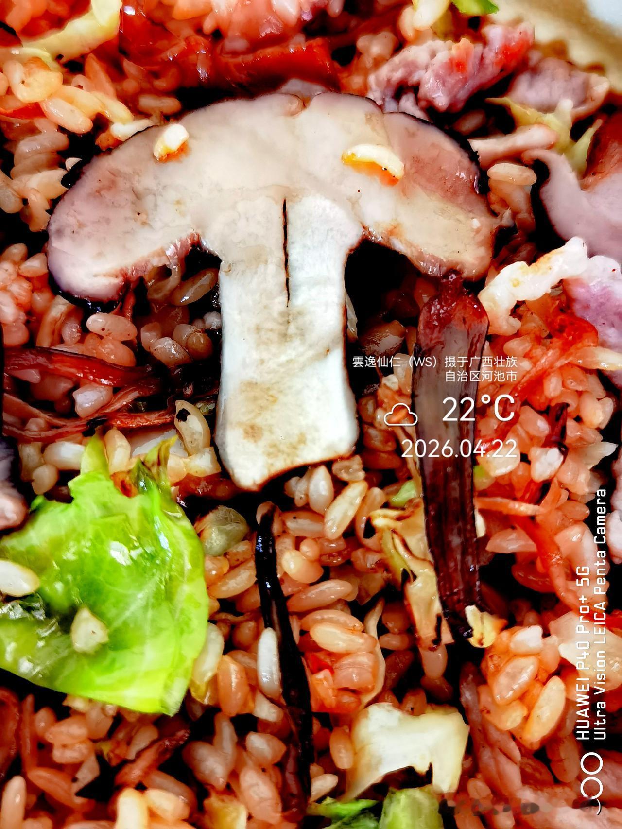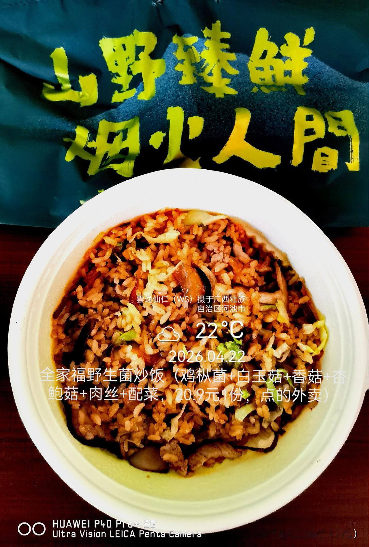 月居生活记录(9569)广西壮族自治区河池市(6)品尝小吃2:艾粑(2元1个)、全家福野生菌炒饭(鸡枞菌+白玉菇+香菇+杏鲍菇+肉丝+配菜,20.9元1份,点的外卖)、超甜李子3元(2元1斤)。