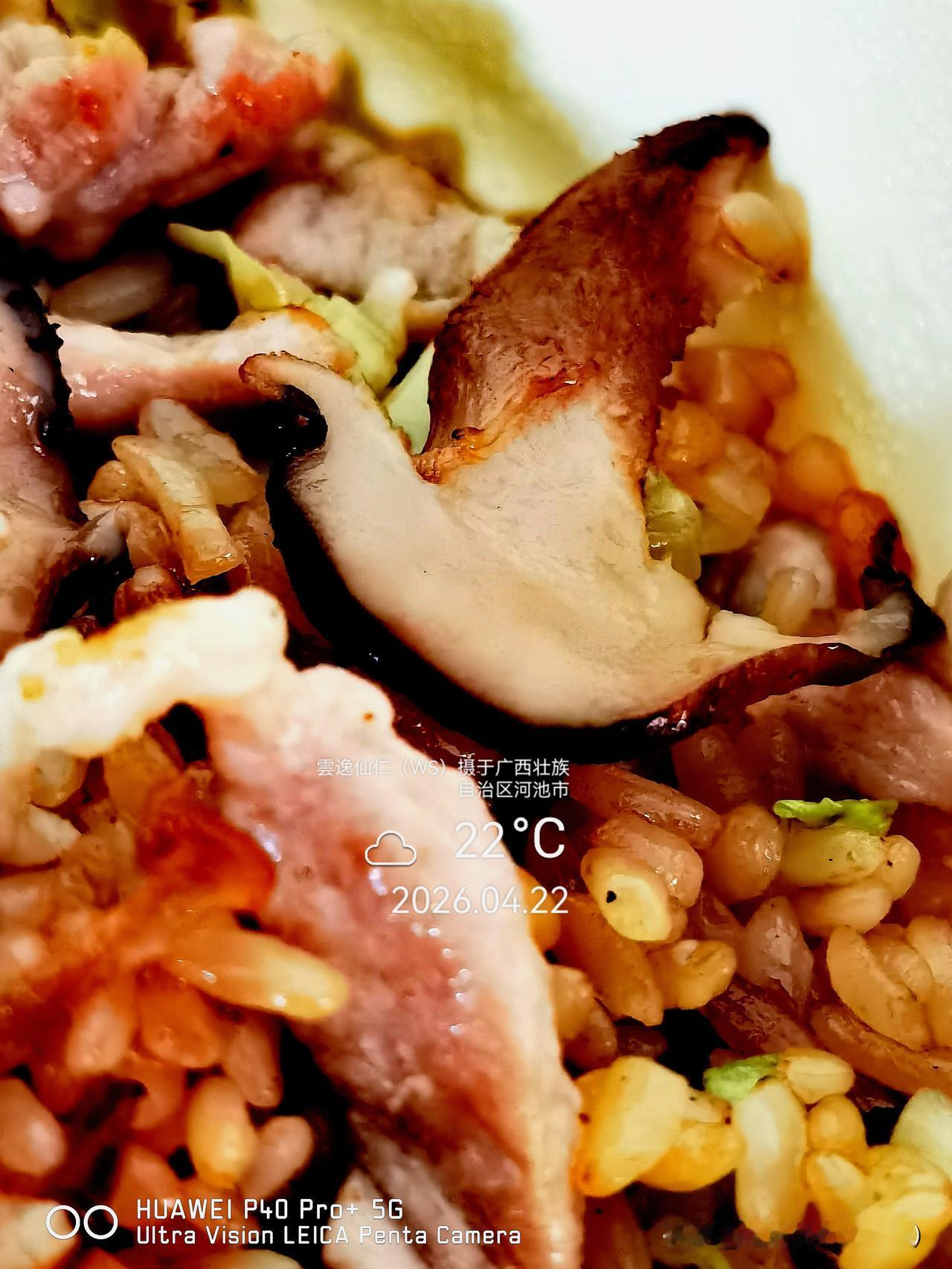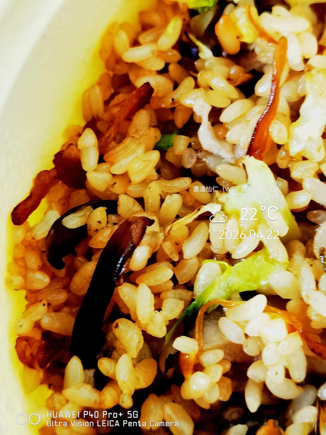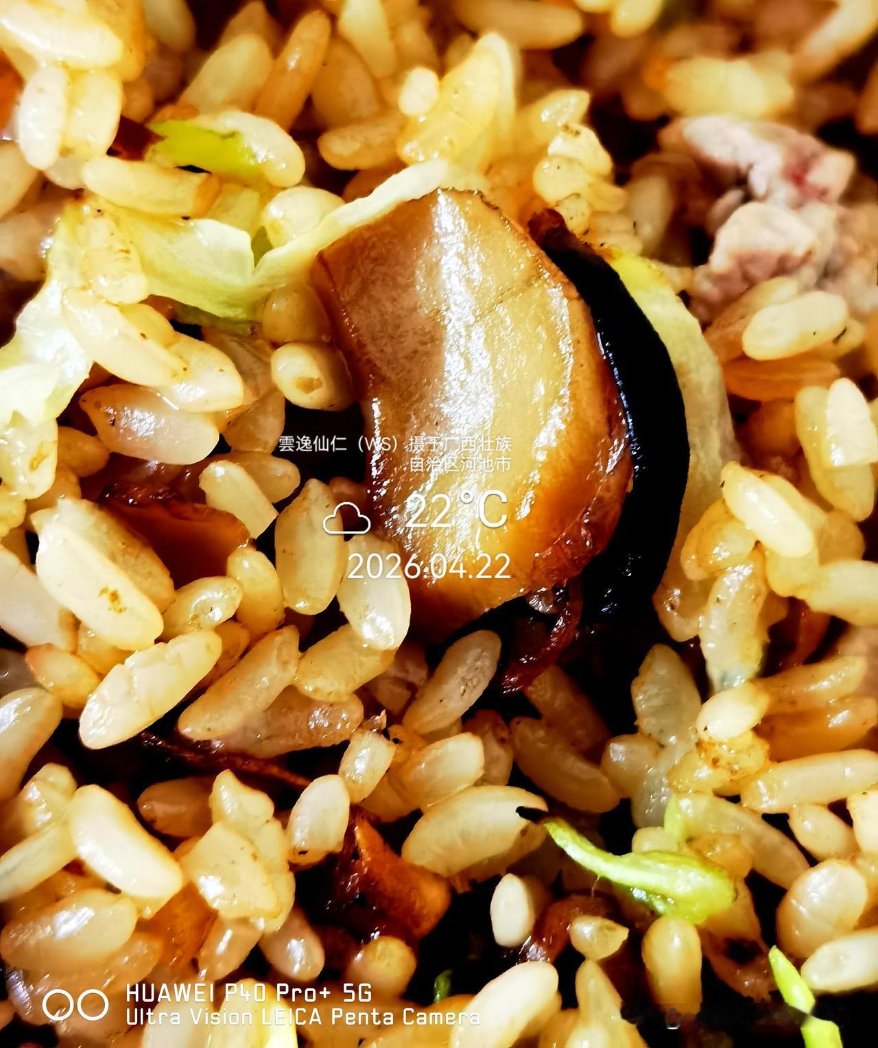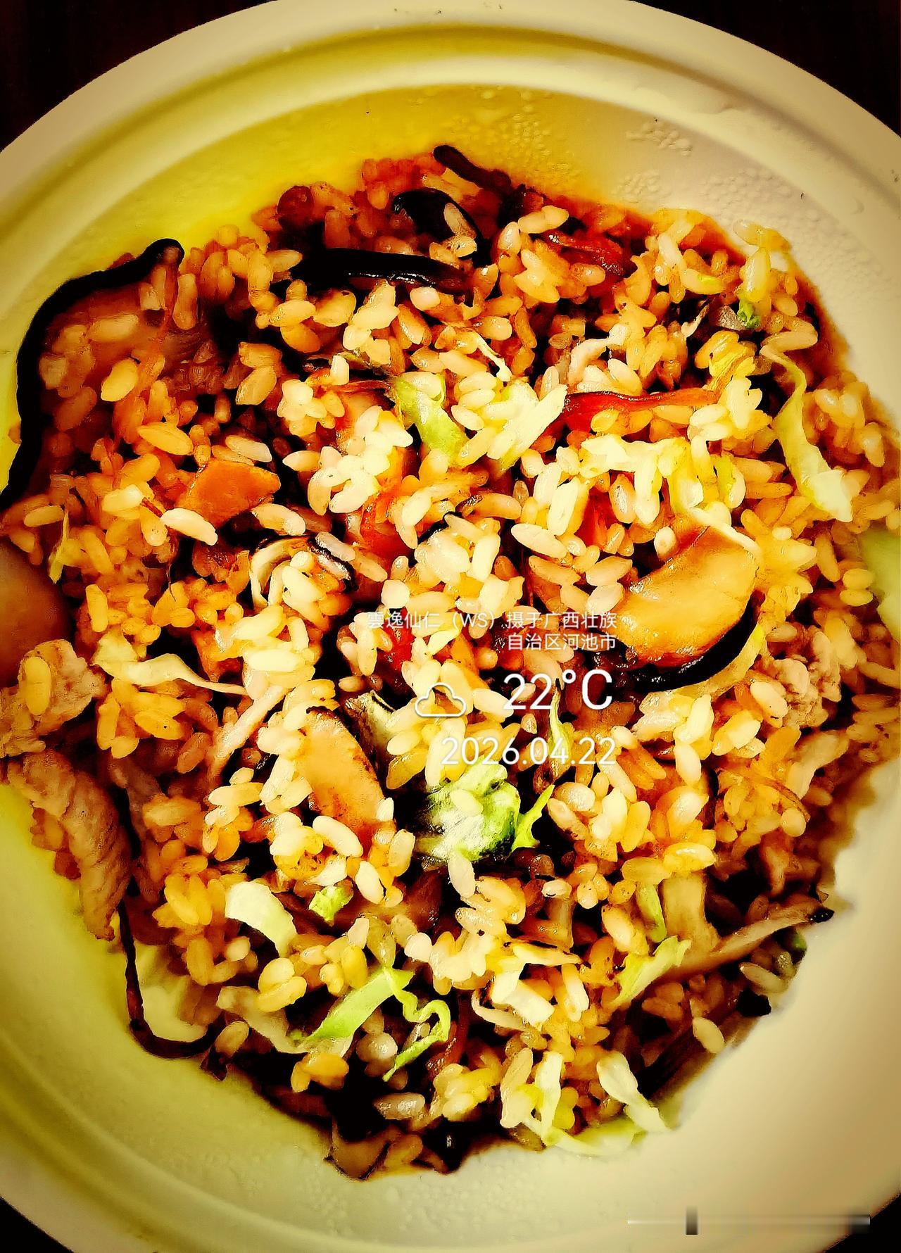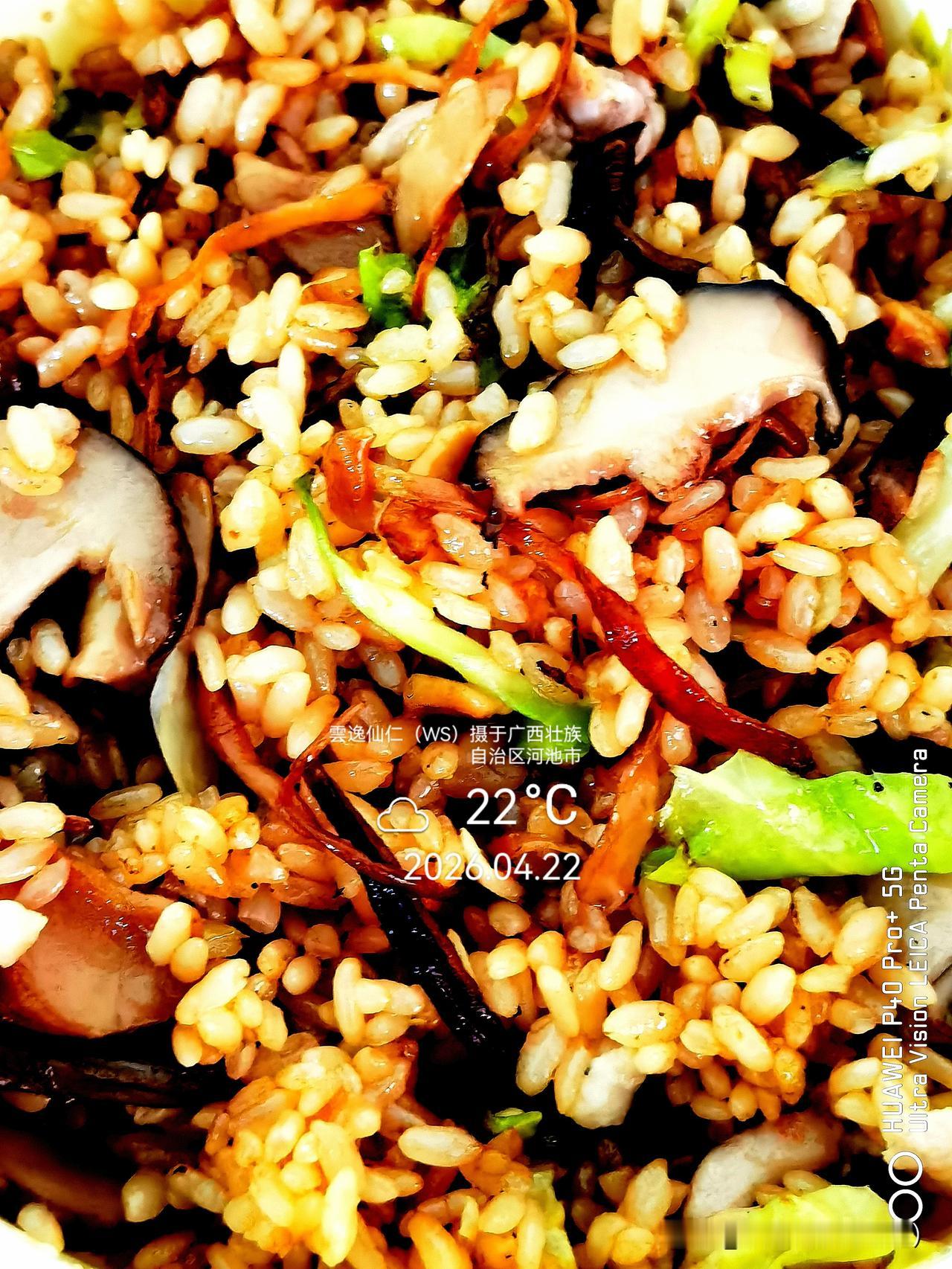 月居生活记录(9569)广西壮族自治区河池市(6)品尝小吃2:艾粑(2元1个)、全家福野生菌炒饭(鸡枞菌+白玉菇+香菇+杏鲍菇+肉丝+配菜,20.9元1份,点的外卖)、超甜李子3元(2元1斤)。