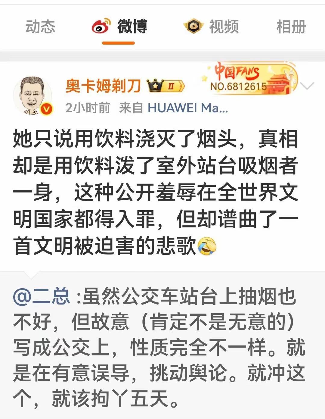 女的在公众场所劝阻吸烟,双方产生轻微摩擦;