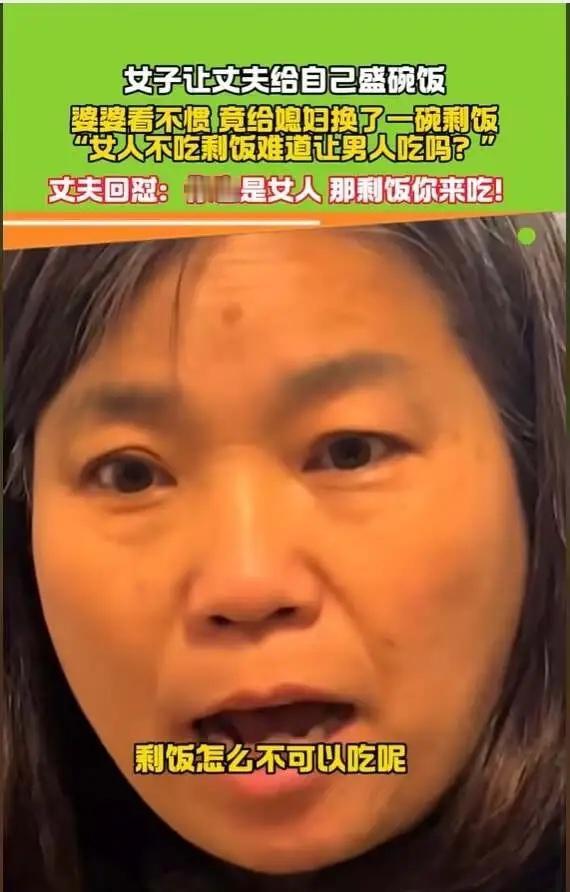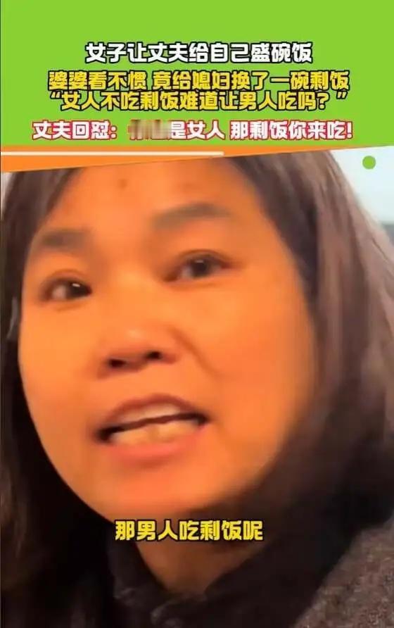 你身边有这样拎得清的丈夫吗?面对婆婆的偏心刁难,你觉得丈夫该怎么做才对?评论区聊聊你的看法。江西婆婆让儿媳吃剩饭引热议
