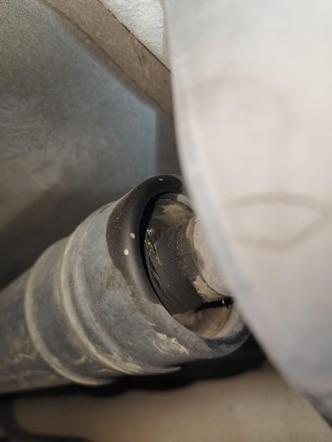 看伤情,像是被什么东西砸到了;另外,发动机轻微洇油,传动轴轻微洇油;