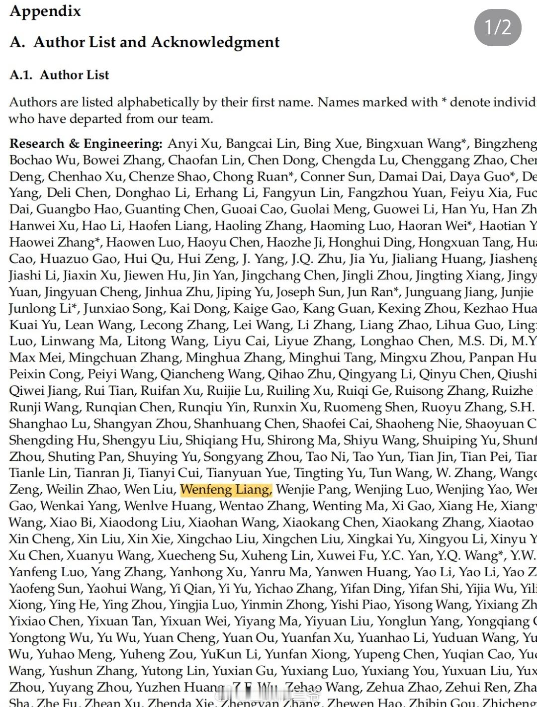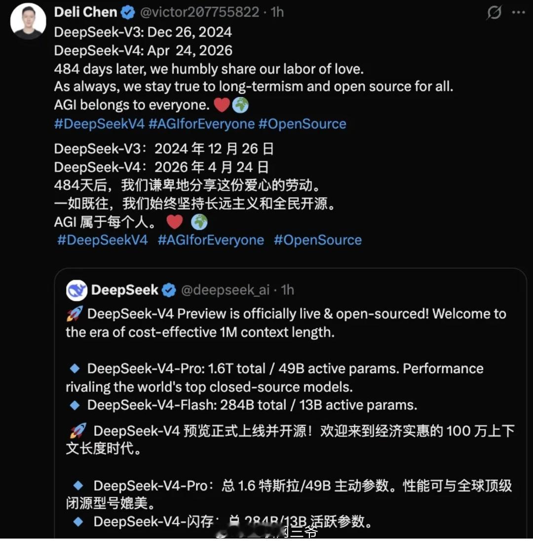 DeepSeek致谢近300研发者10人已离职DeepSeek-V4技术报告发布,最让人动容的是结尾那份长长的贡献者名单。创始人梁文锋在列,更有不少带星号的名字——即便已经离开团队,依然被郑重记下对V4的关键贡献。过去一年,外界总在议论人才流动,而这份名单用最体面的方式告诉所有人:每一位参与者,都算数。从V3到V4,整整484天的沉淀,团队用“谦卑的爱心劳动”交出答卷。一如既往坚持长期主义、坚持全民开源,不疾不徐,步步扎实。大模型的征途从不是一时喧嚣,而是一群人、一条心,把时间熬成成果。