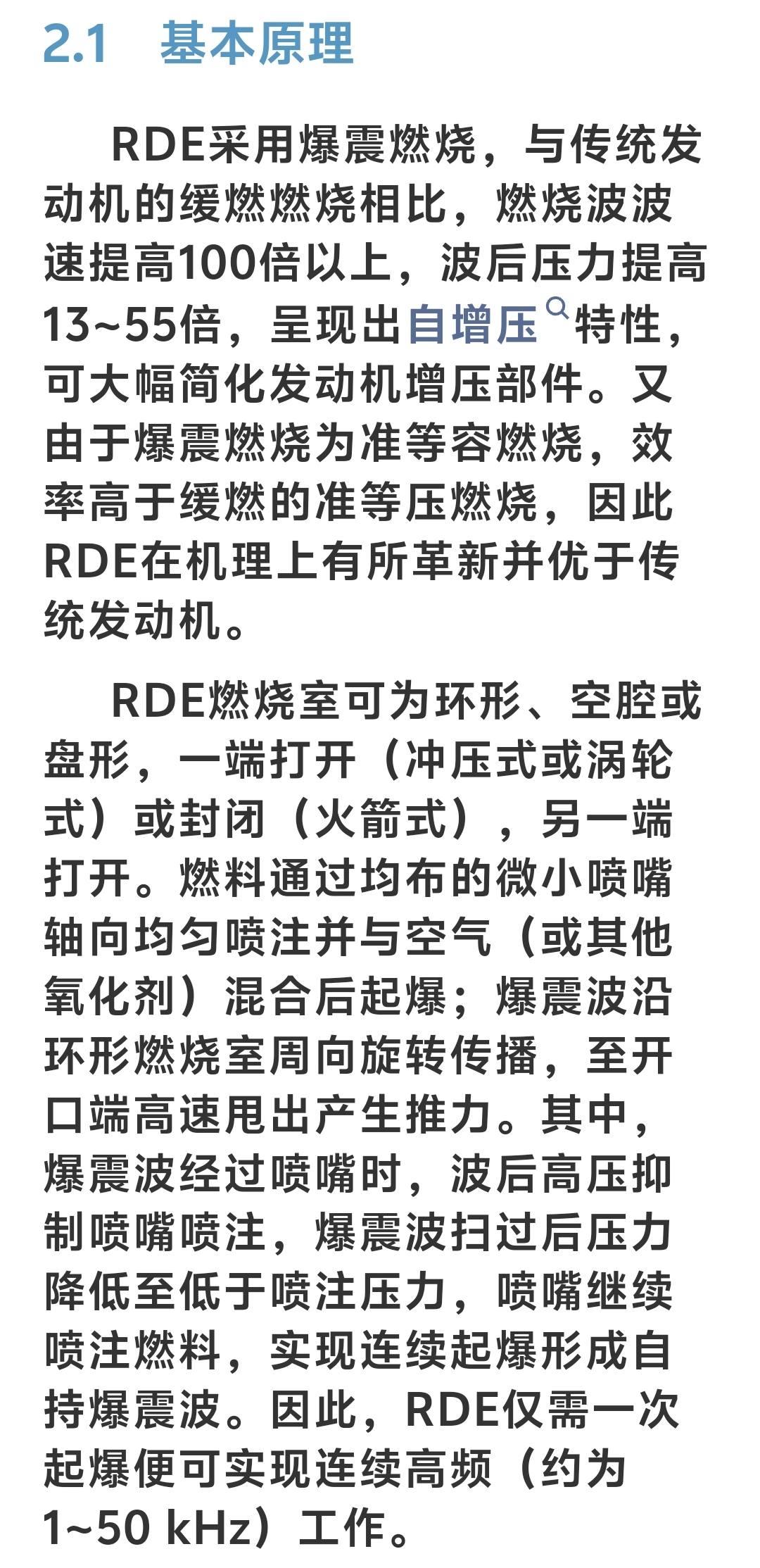 旋转爆震发动机(RDE)之所以是目前最先进的动力技术,就是比传统动力高数倍的燃烧效率,这带来两点好处: