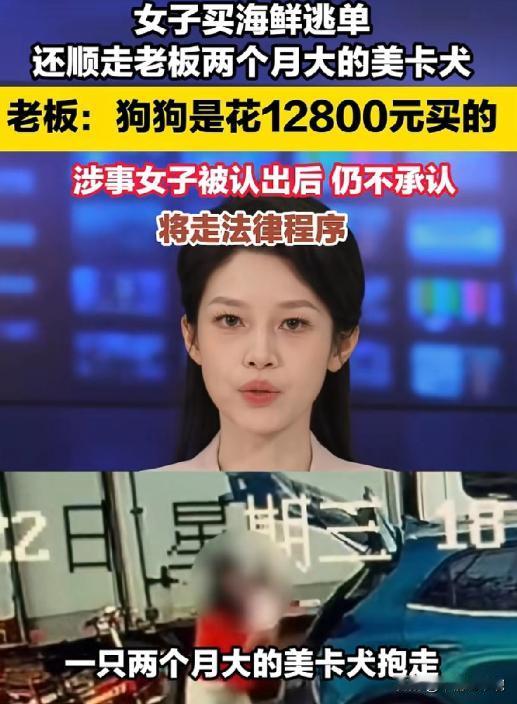 4月22日,河北秦皇岛一女子在海鲜店购物时,趁店主不备,竟顺手牵羊抱走了一只价值一万多元的美卡幼犬。这只小狗是顾客放在打开的后备箱里透气的,结果连狗带海鲜,全被女子不告而取。